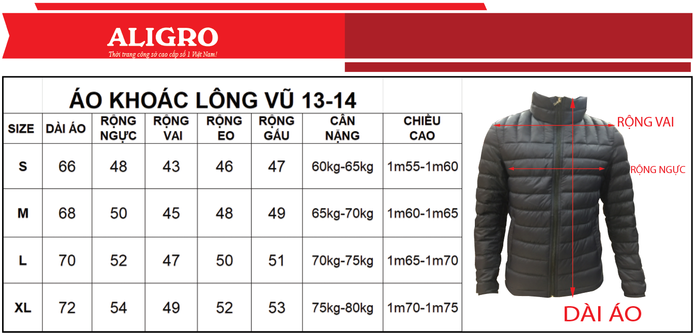 Áo khoác lông vũ Aligro ALGALV.14 màu Khaki được may từ chất liệu vải Polyester cao cấp, nhẹ và ấm, mang đến cho phái mạnh sự thoải mái tối đa, kiểu dáng trần ngang khỏe khoắn nam tính.