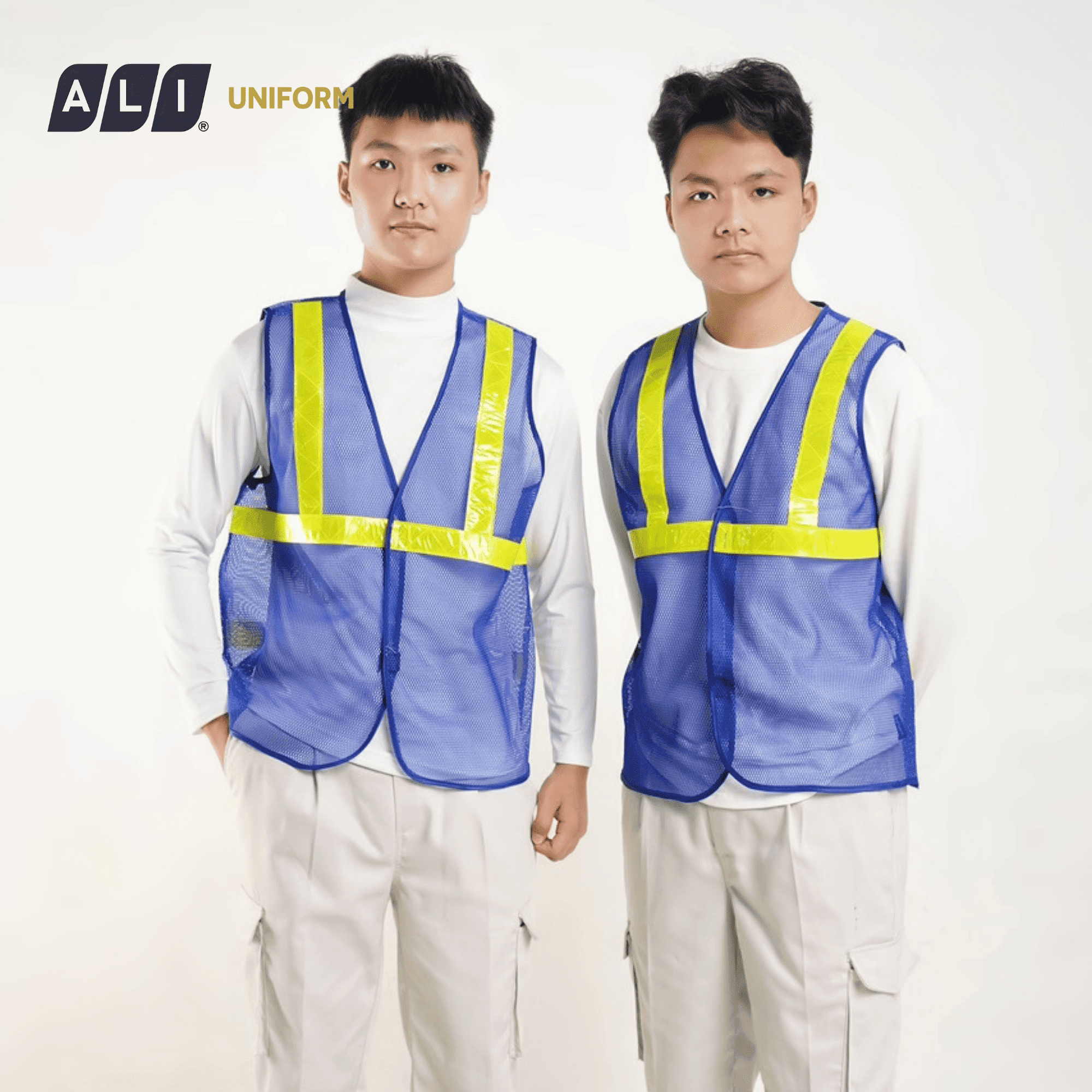 Áo gile bảo hộ lao động lưới phản quang nhựa màu xanh dương GLBH.FFDLXD.10