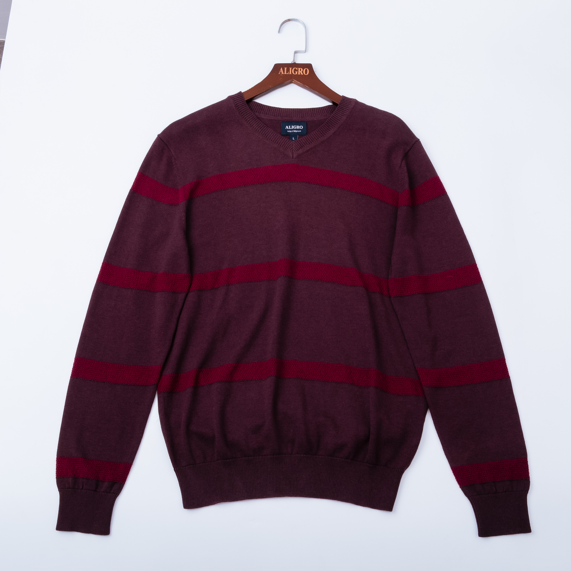 Áo len nam Aligro ALEND016 cổ tim nâu kẻ được may từ chất liệu len mềm nhẹ, không bai không xù, giữ ấm nhưng vẫn thoáng khí, mang đến cho phái mạnh sự thoải mái tối đa.