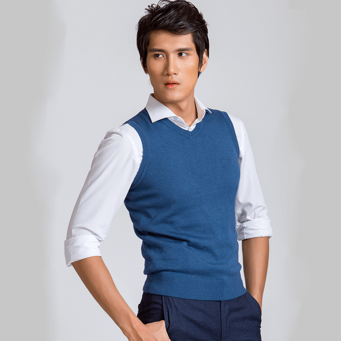 - Áo gilê len cổ tim kết hợp với áo sơ mi dài tay và áo khoác là một sự lựa chọn thú vị cho nam giới trong mùa thu đông này.