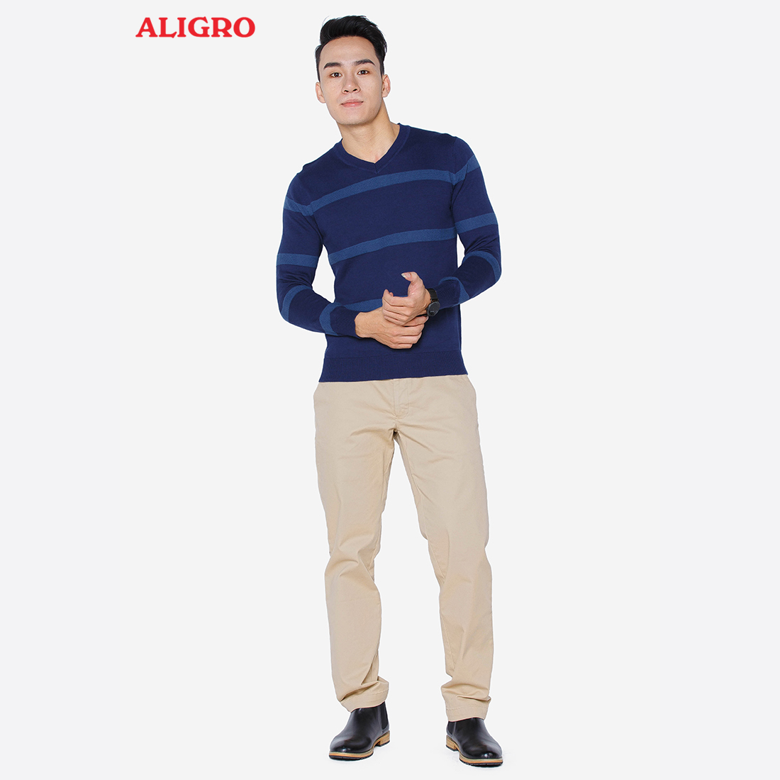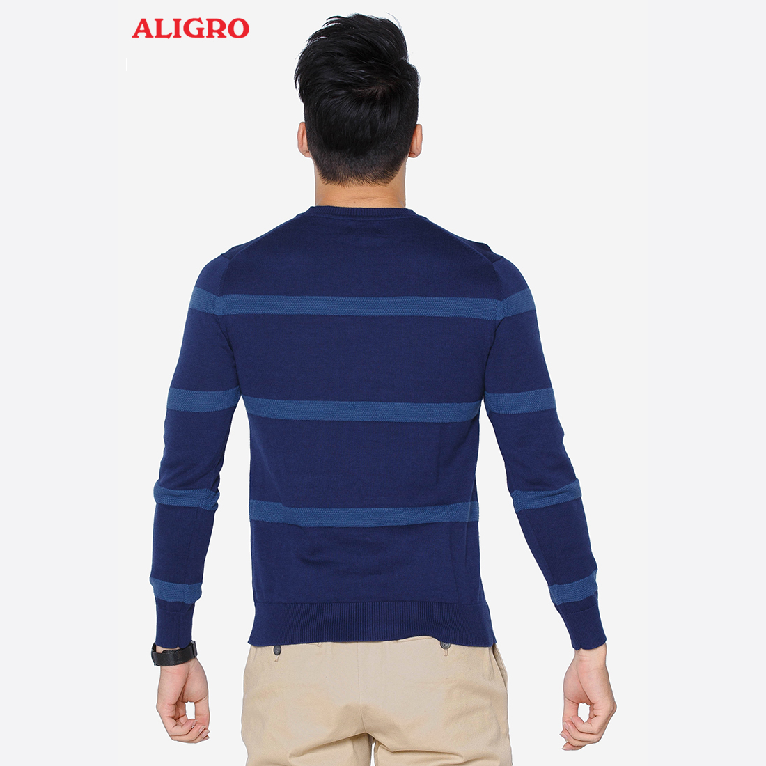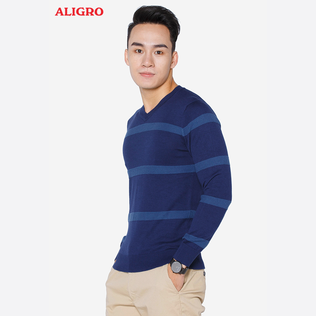 Áo len nam Aligro ALEND015 cổ tim xanh navy kẻ được may từ chất liệu len mềm nhẹ, không bai không xù, giữ ấm nhưng vẫn thoáng khí, mang đến cho phái mạnh sự thoải mái tối đa.