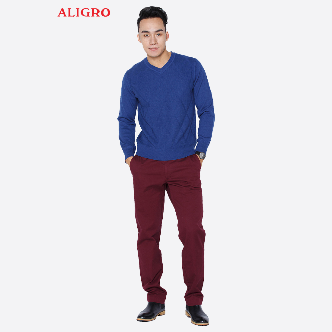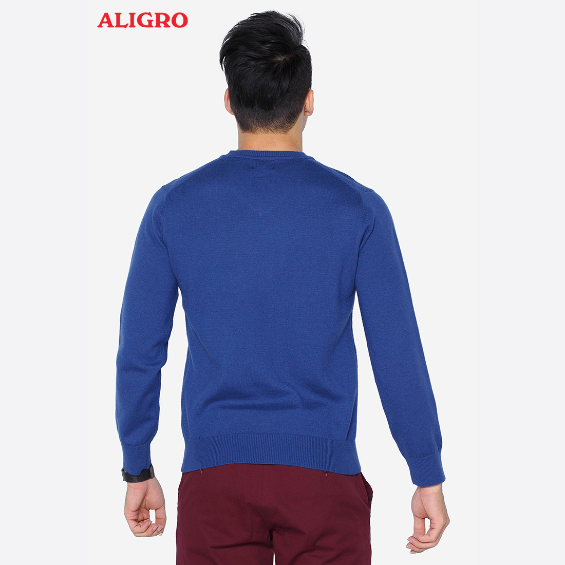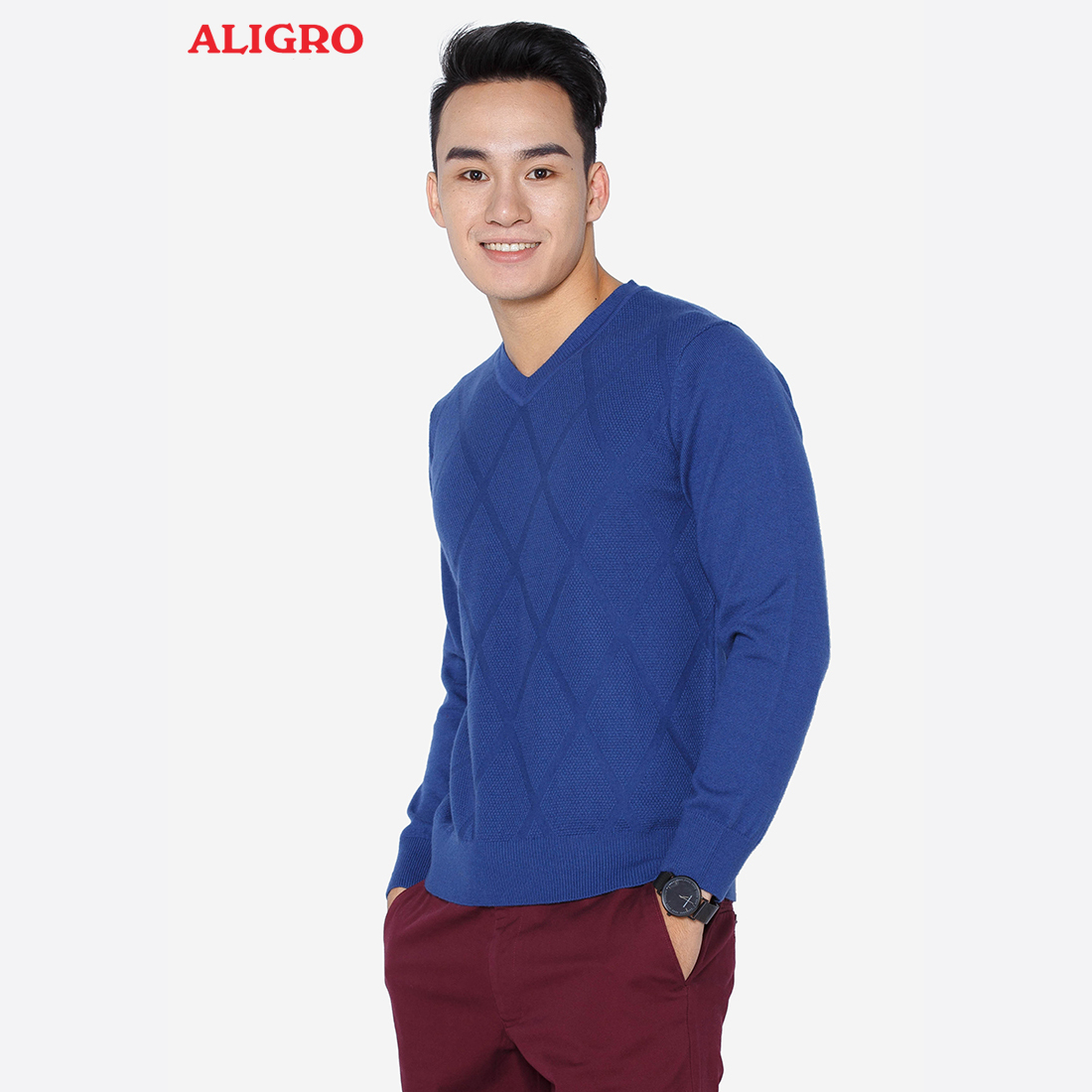 Áo len nam Aligro ALEND018 cổ tim xanh dương được may từ chất liệu lông cừu pha lông sợi tự nhiên, mềm nhẹ, không bai không xù, giữ ấm nhưng vẫn thoáng khí, mang đến cho phái mạnh sự thoải mái tối đa.