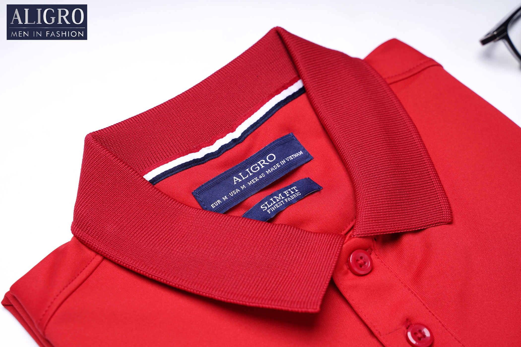 Áo polo nam ngắn tay cao cấp Aligro APLOUA005 chất liệu vải coolmax form SLIMFIT màu đỏ