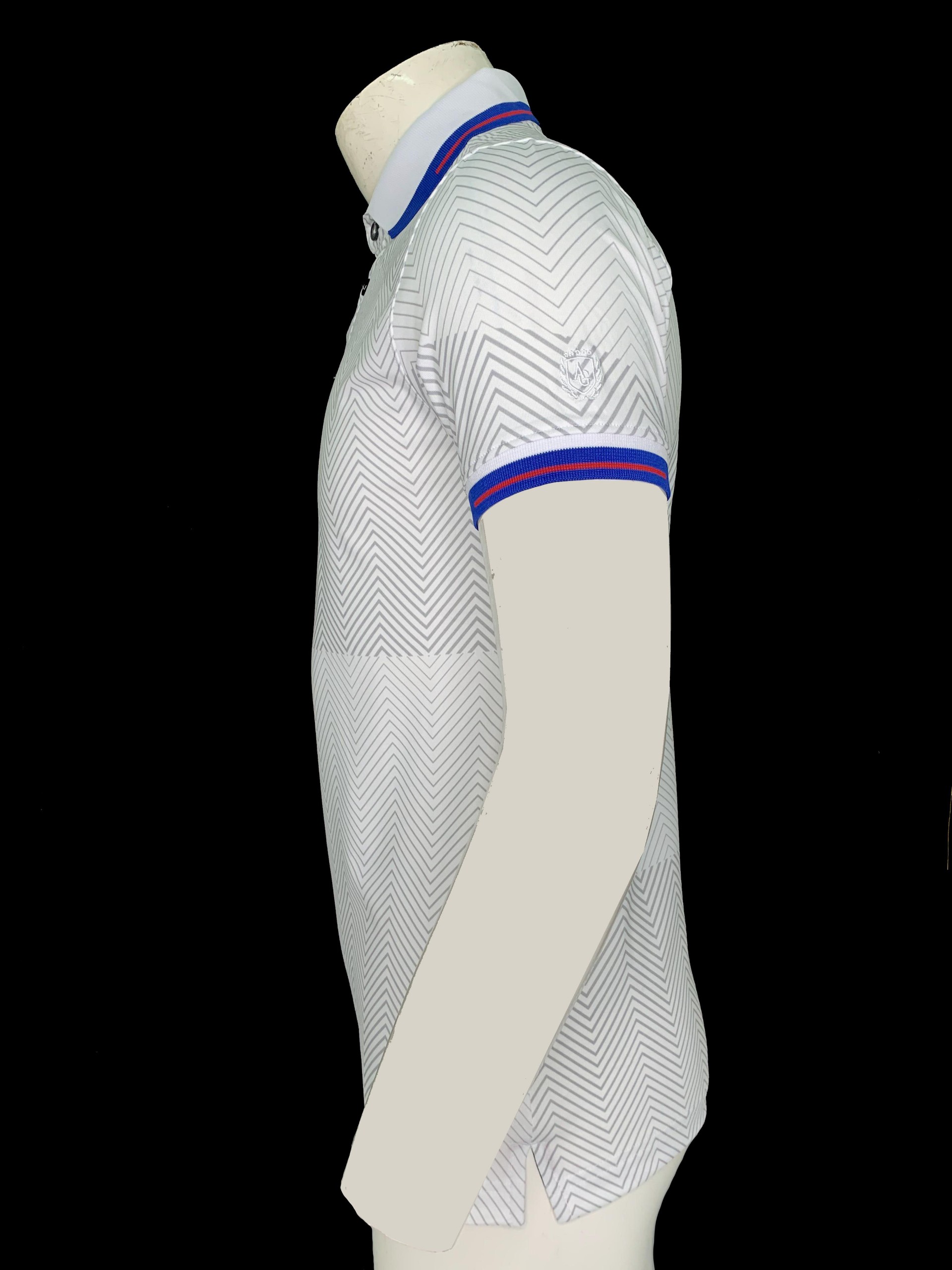 + Thiết kế hiện đại với cổ áo và tay áo bo dệt chỉn chu, gấu áo xẻ tà hai bên được hoàn thiện bằng dây dệt 3 màu độc đáo – chi tiết tạo điểm nhấn nổi bật cho tổng thể.