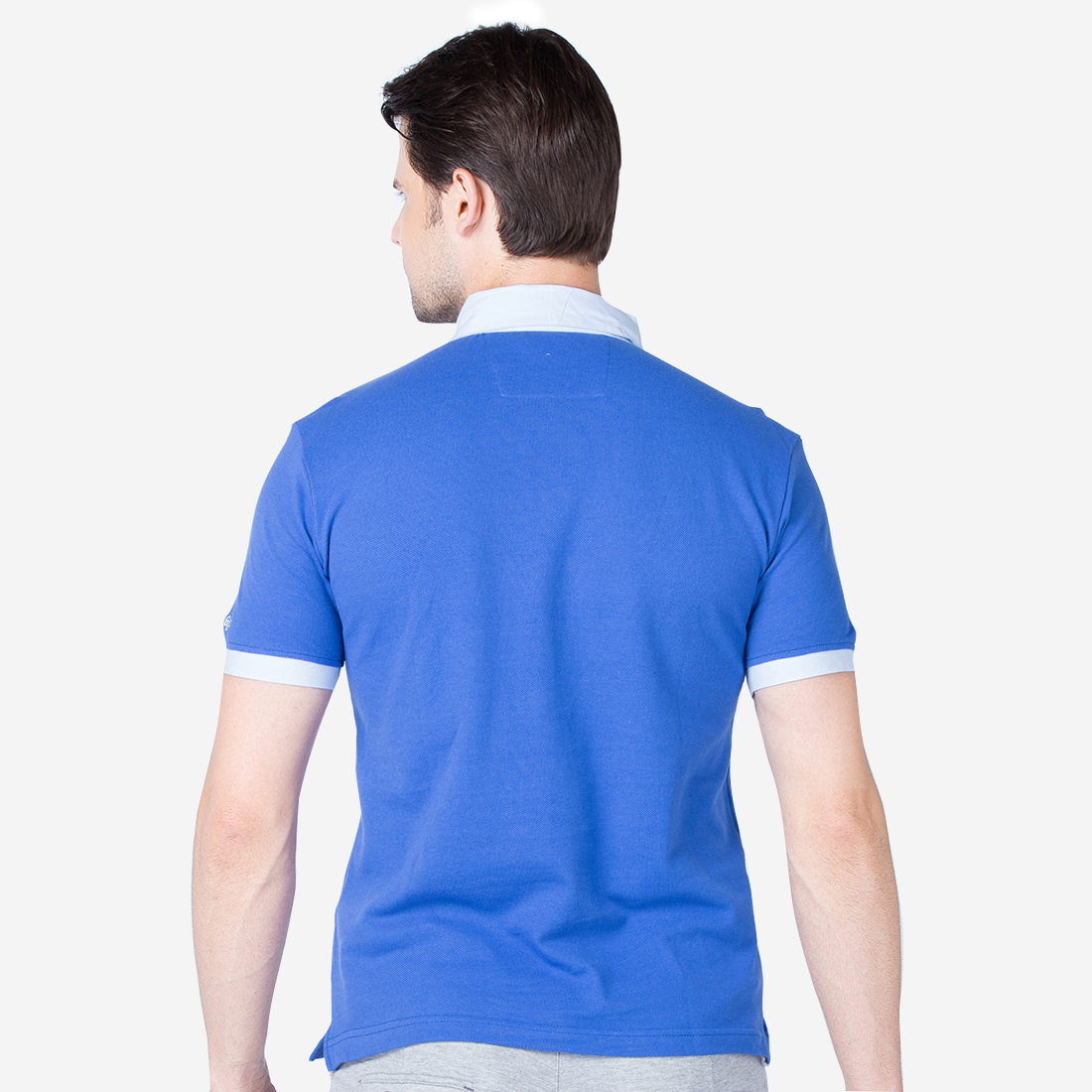 Áo polo nam cao cấp Aligro ALGPLO.7 chất liệu 100% cotton form SLIMFIT màu xanh dương phối trắng