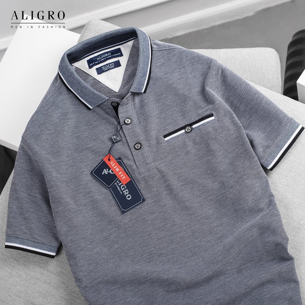 Áo polo nam ngắn tay Aligro cao cấp ALGPLO40 vải CVC cao cấp dáng slimfit có túi ngực màu ghi sáng