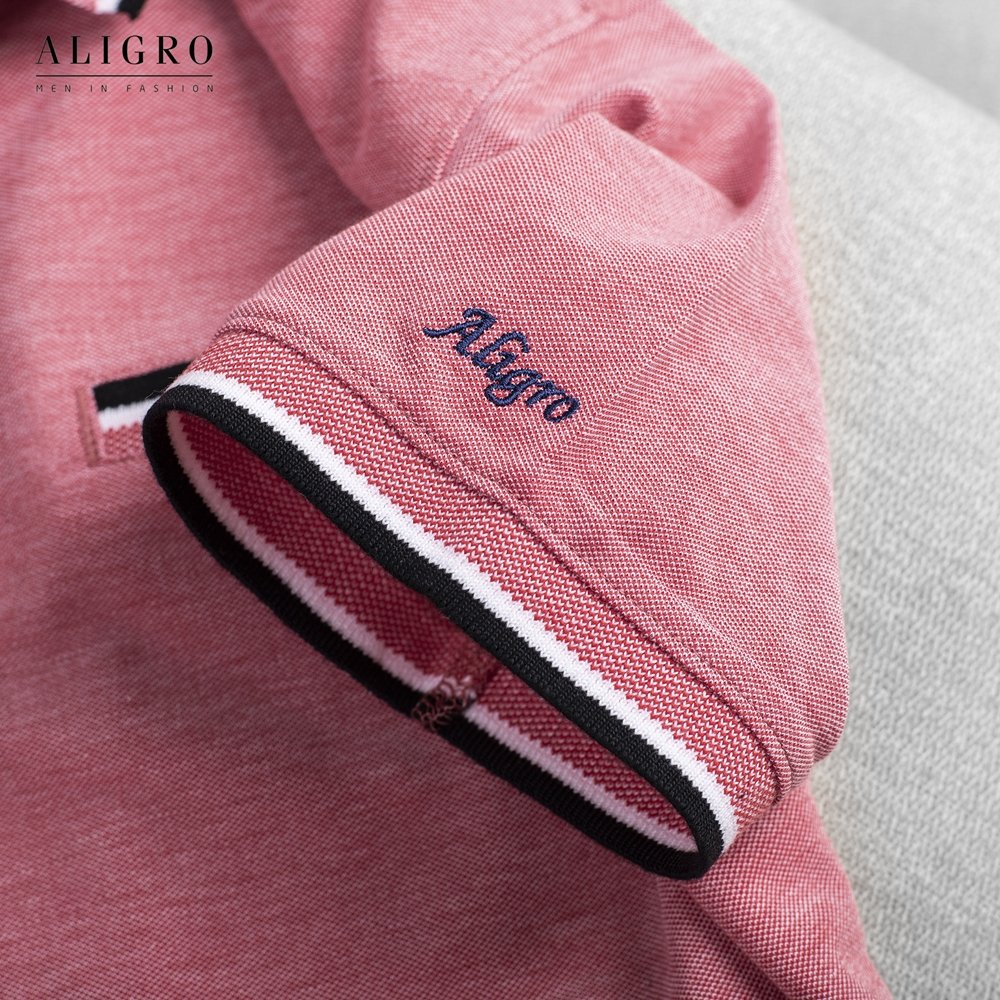 Áo polo nam ngắn tay Aligro cao cấp ALGPLO41 vải CVC cao cấp dáng slimfit có túi ngực màu hồng