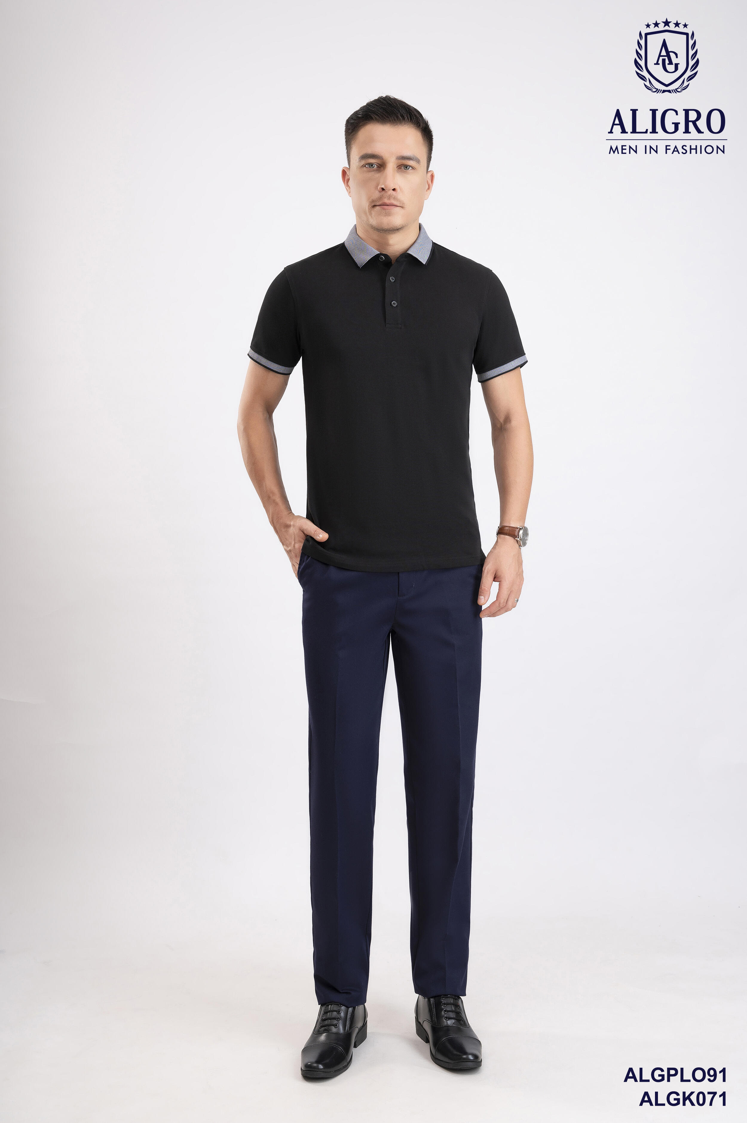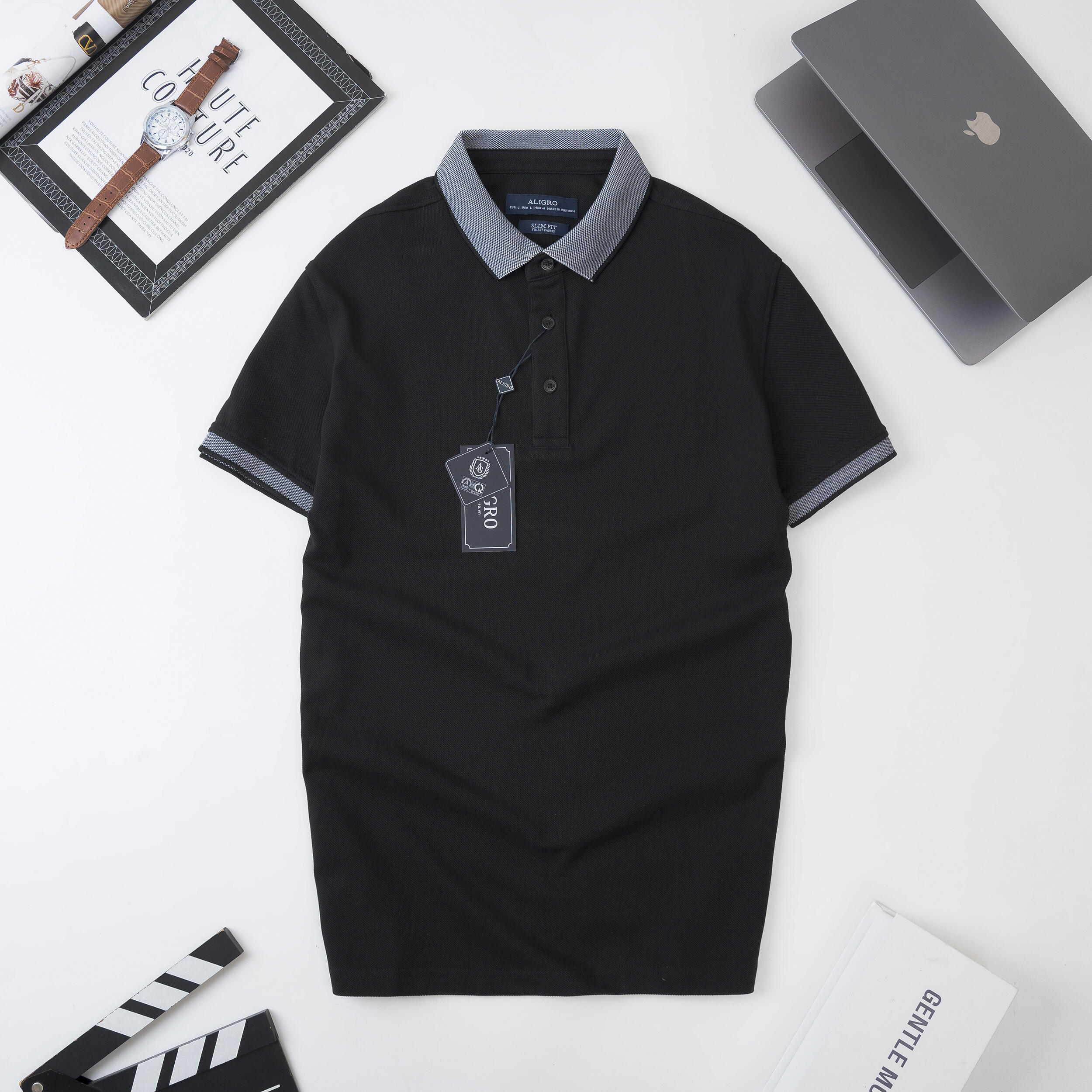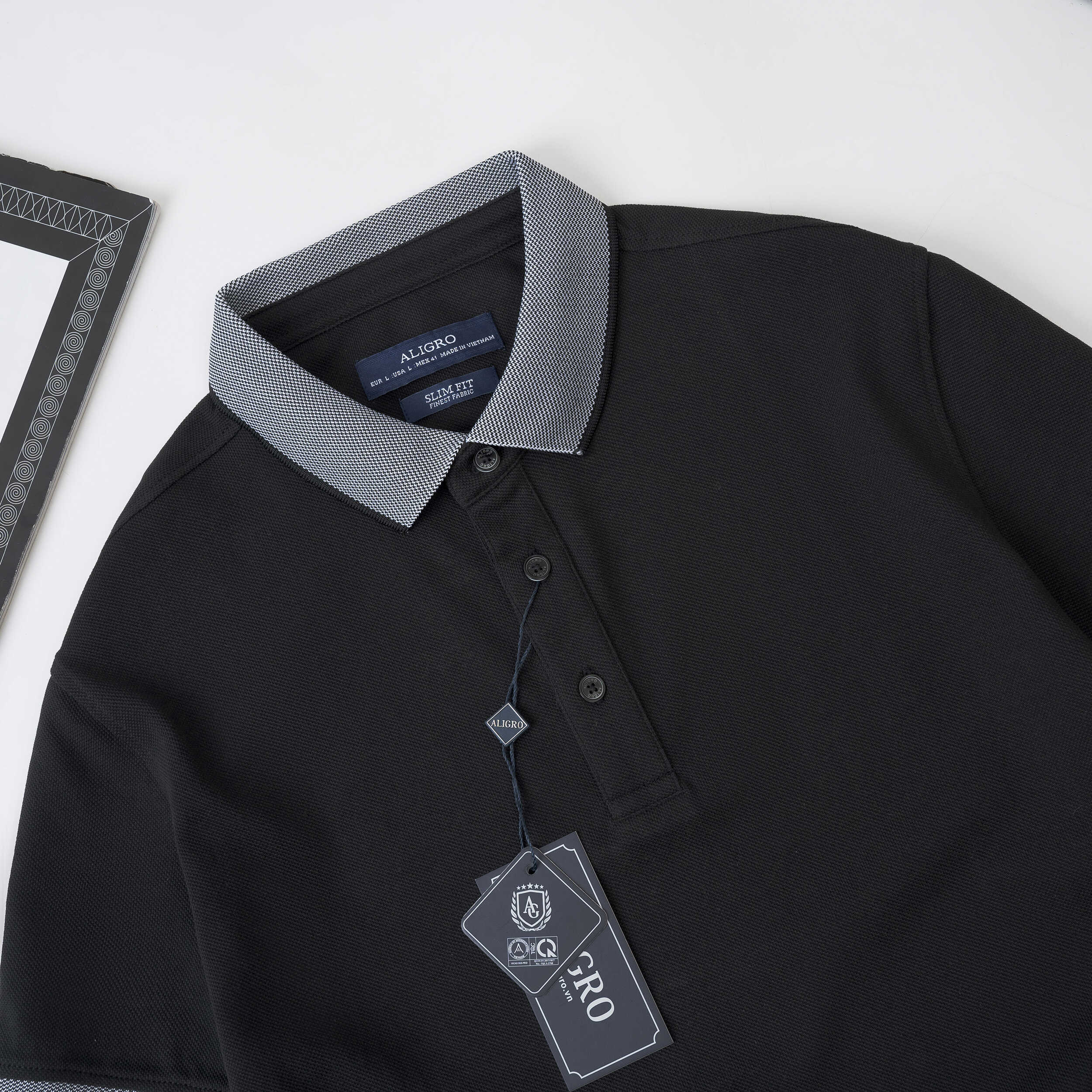 Áo polo nam ngắn tay cao cấp Aligro ALGPLO91 chất liệu 100% cotton form SLIMFIT màu đen