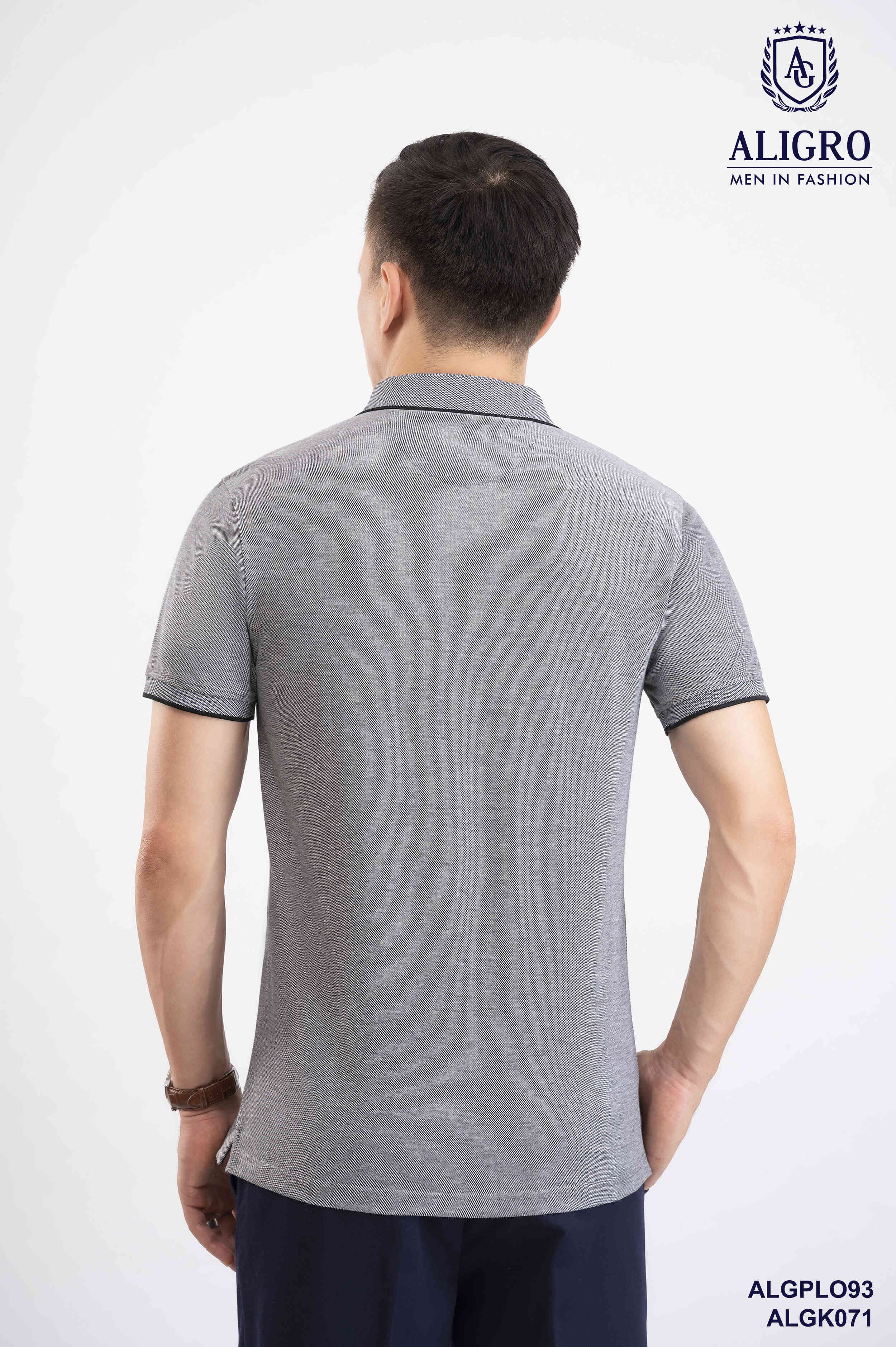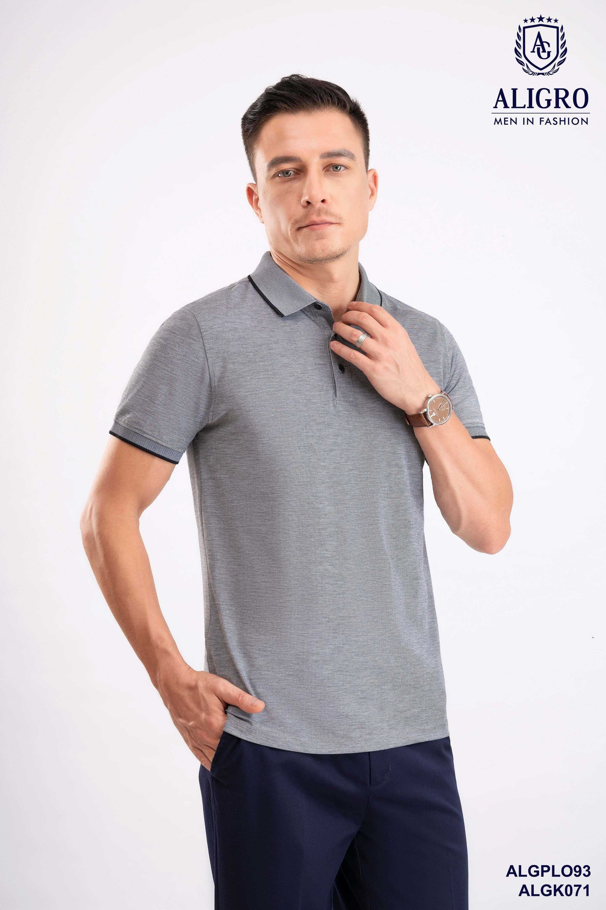 Áo polo nam ngắn tay cao cấp Aligro ALGPLO93 chất liệu 100% cotton form SLIMFIT phối 2 màu sợi ghi-đen