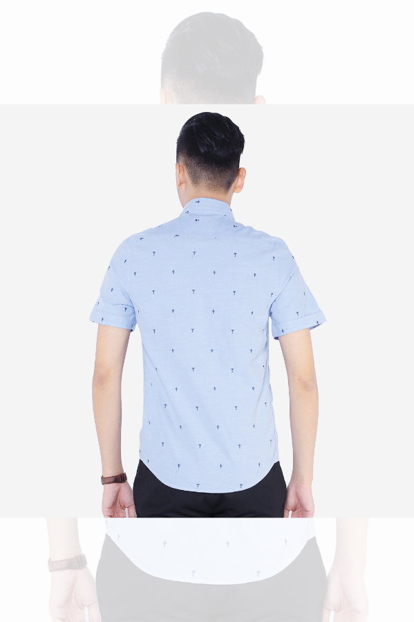Áo sơ mi nam ngắn tay cao cấp Aligro ALGS-C42 vải cotton form SLIMFIT màu xanh thêu chiếc cúp