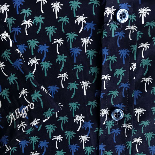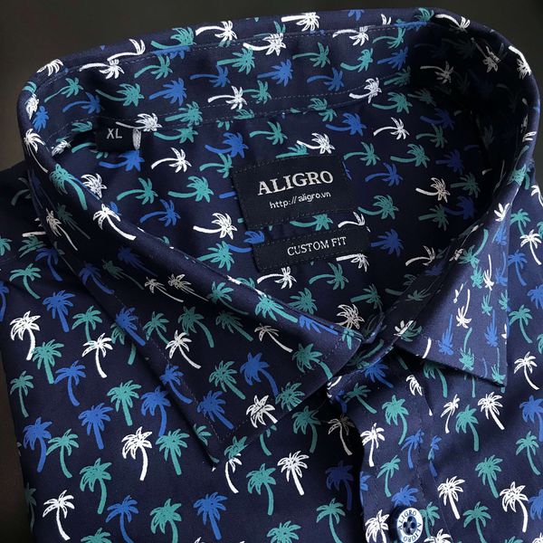 Áo sơ mi nam ngắn tay cao cấp Aligro ALGS-C71 vải cotton form SLIMFIT màu navy in cây dừa