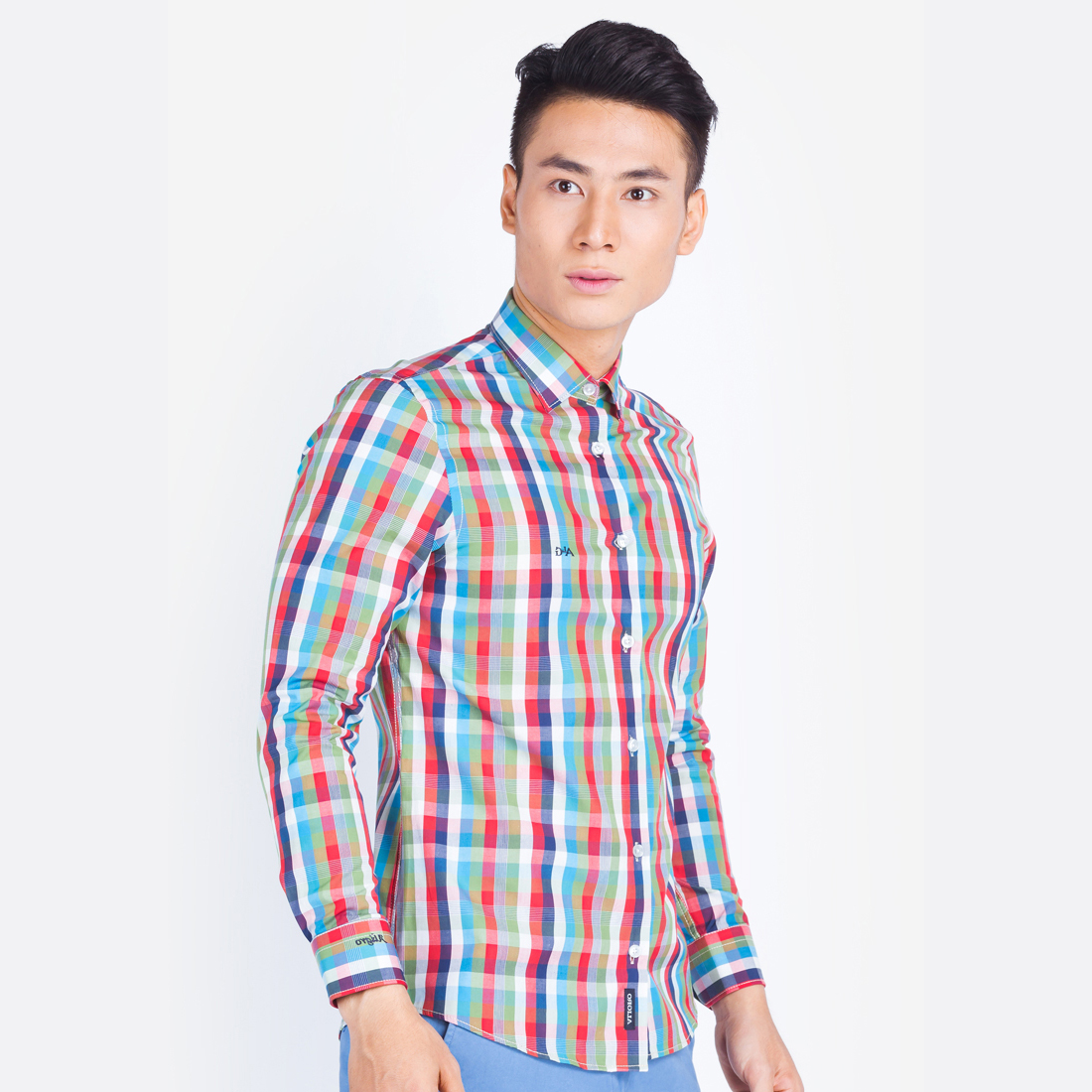 Áo sơ mi nam dài tay công sở cao cấp Aligro ALGS061 dáng Slimfit kẻ sọc xanh đỏ