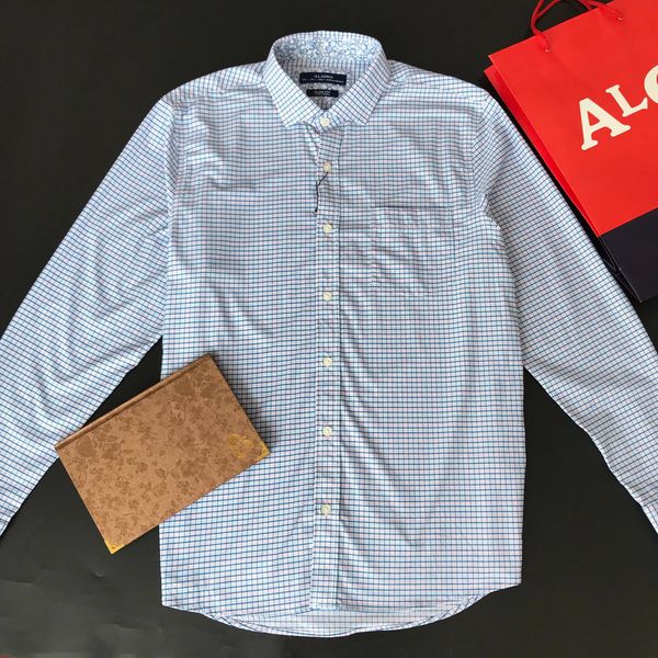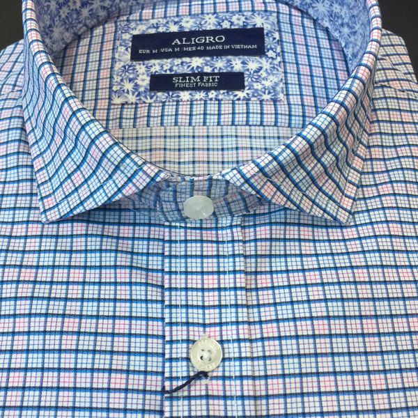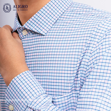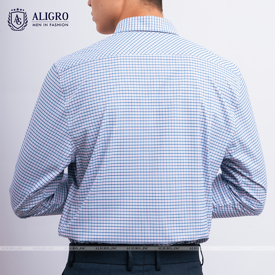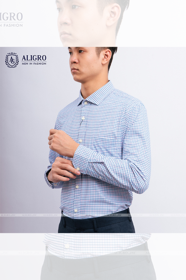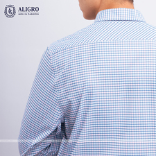 Áo sơ mi dài tay công sở cao cấp Aligro ALGS176 dáng Slimfit màu xanh kẻ caro