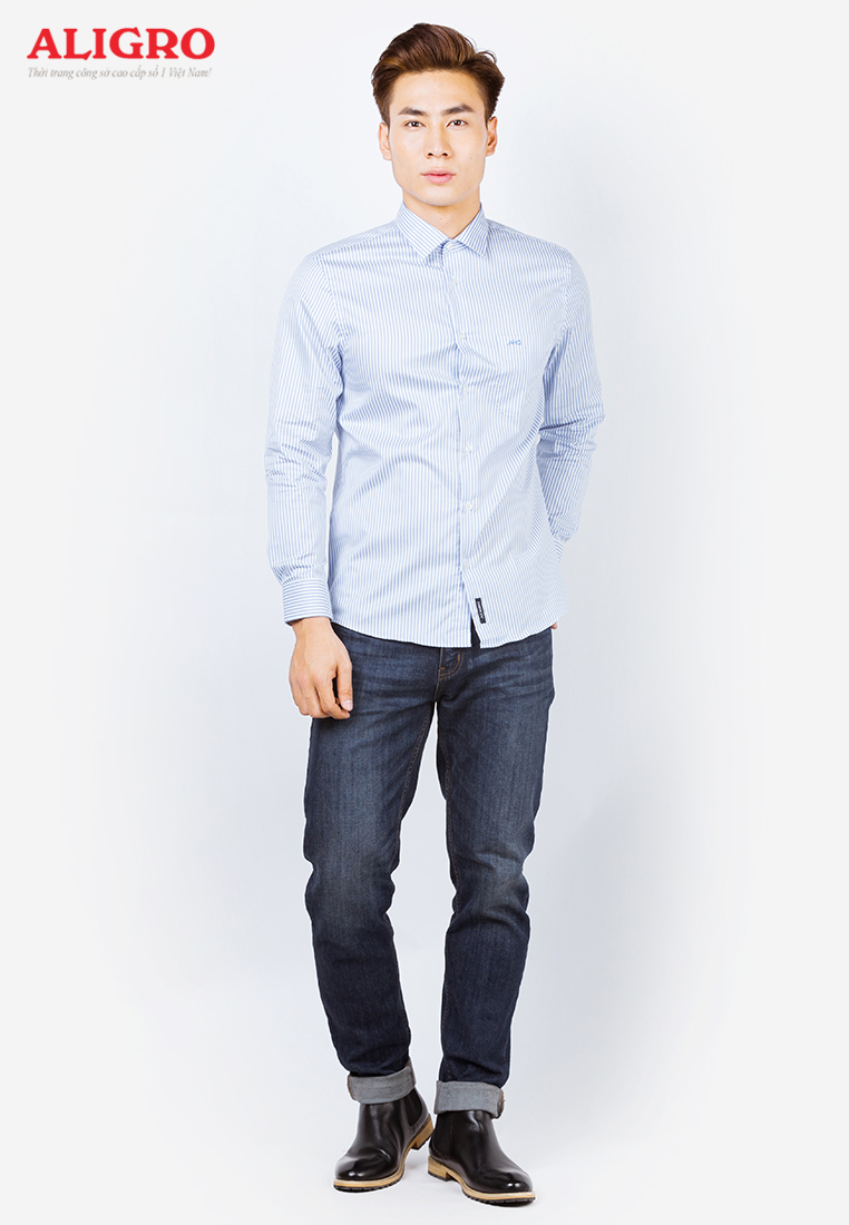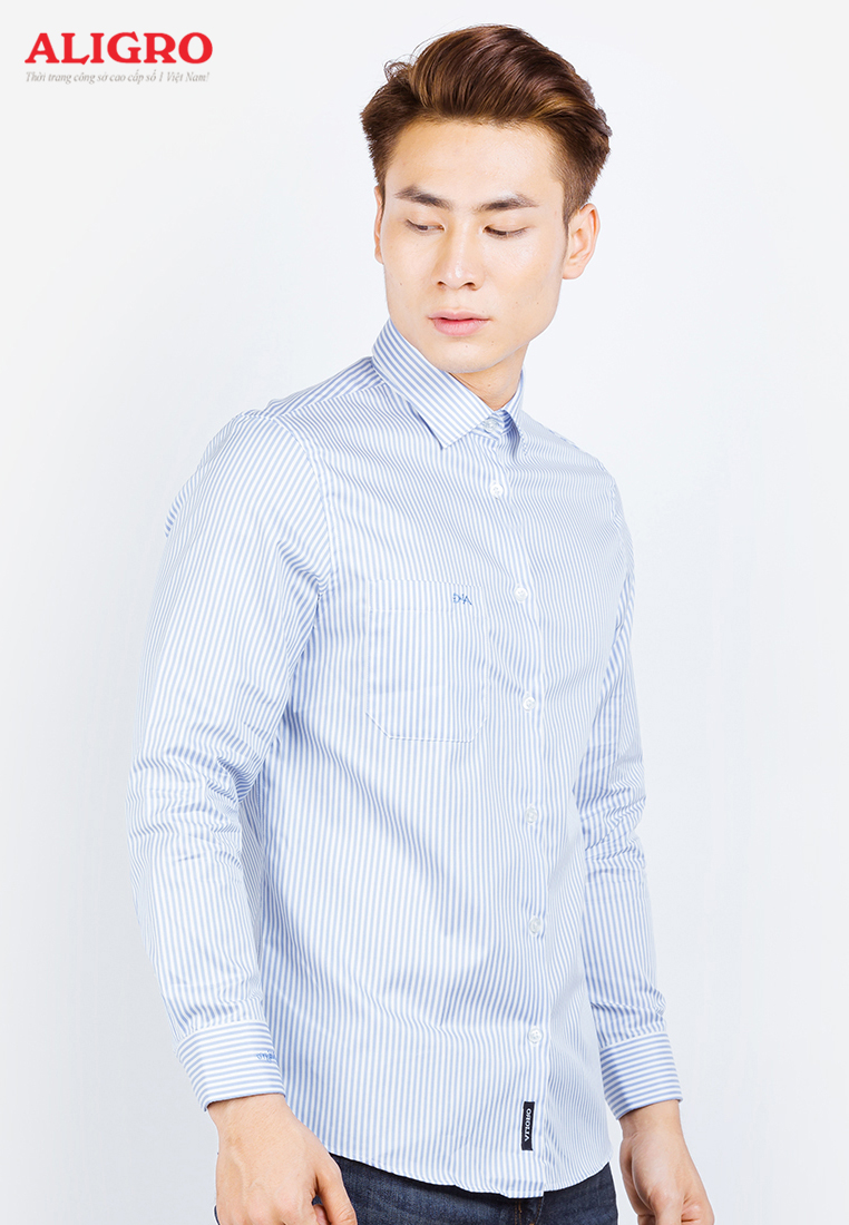 Áo sơ mi nam dài tay công sở cao cấp Aligro ALGS111 dáng Slimfit màu xanh da trời