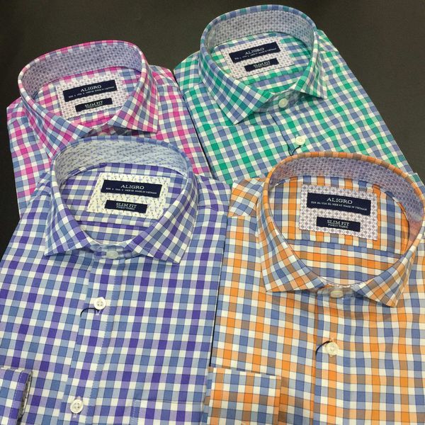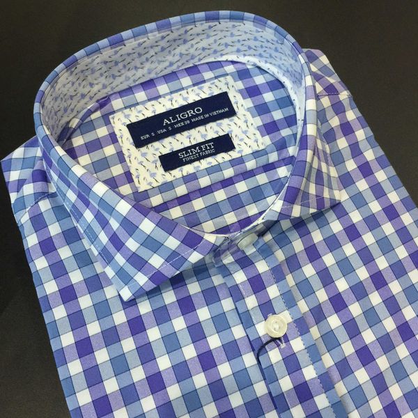 Áo sơ mi dài tay công sở cao cấp Aligro ALGS185 dáng Slimfit kẻ caro xanh