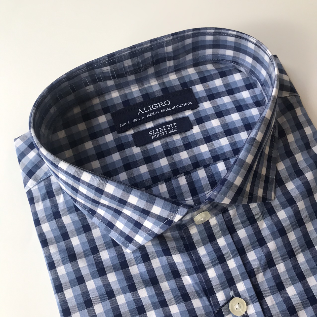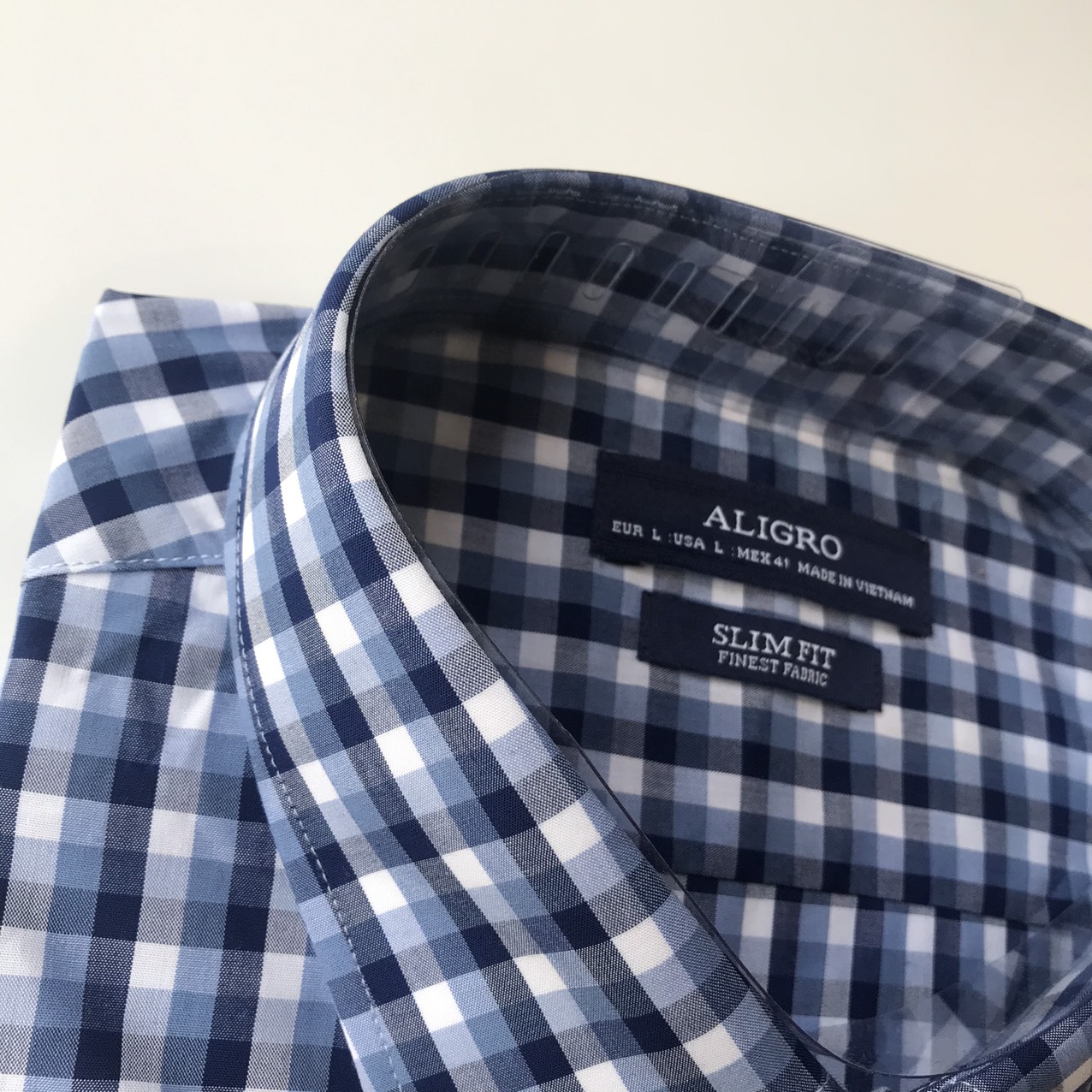 Áo sơ mi nam ngắn tay cao cấp Aligro ALGS-C113 chất liệu vải bamboo form SLIMFIT kẻ caro navy