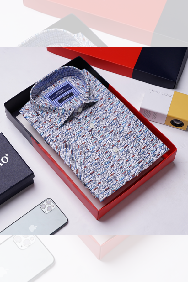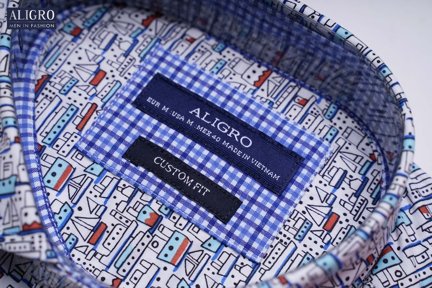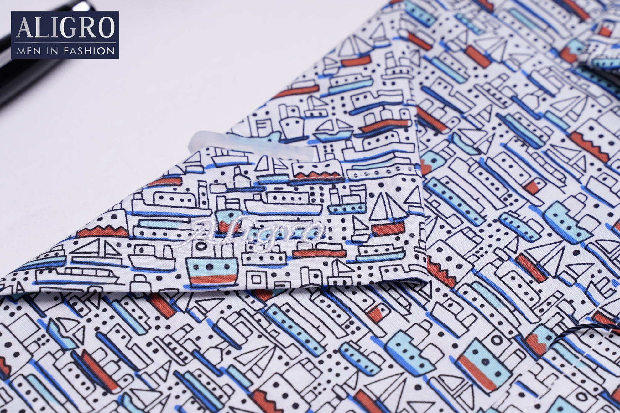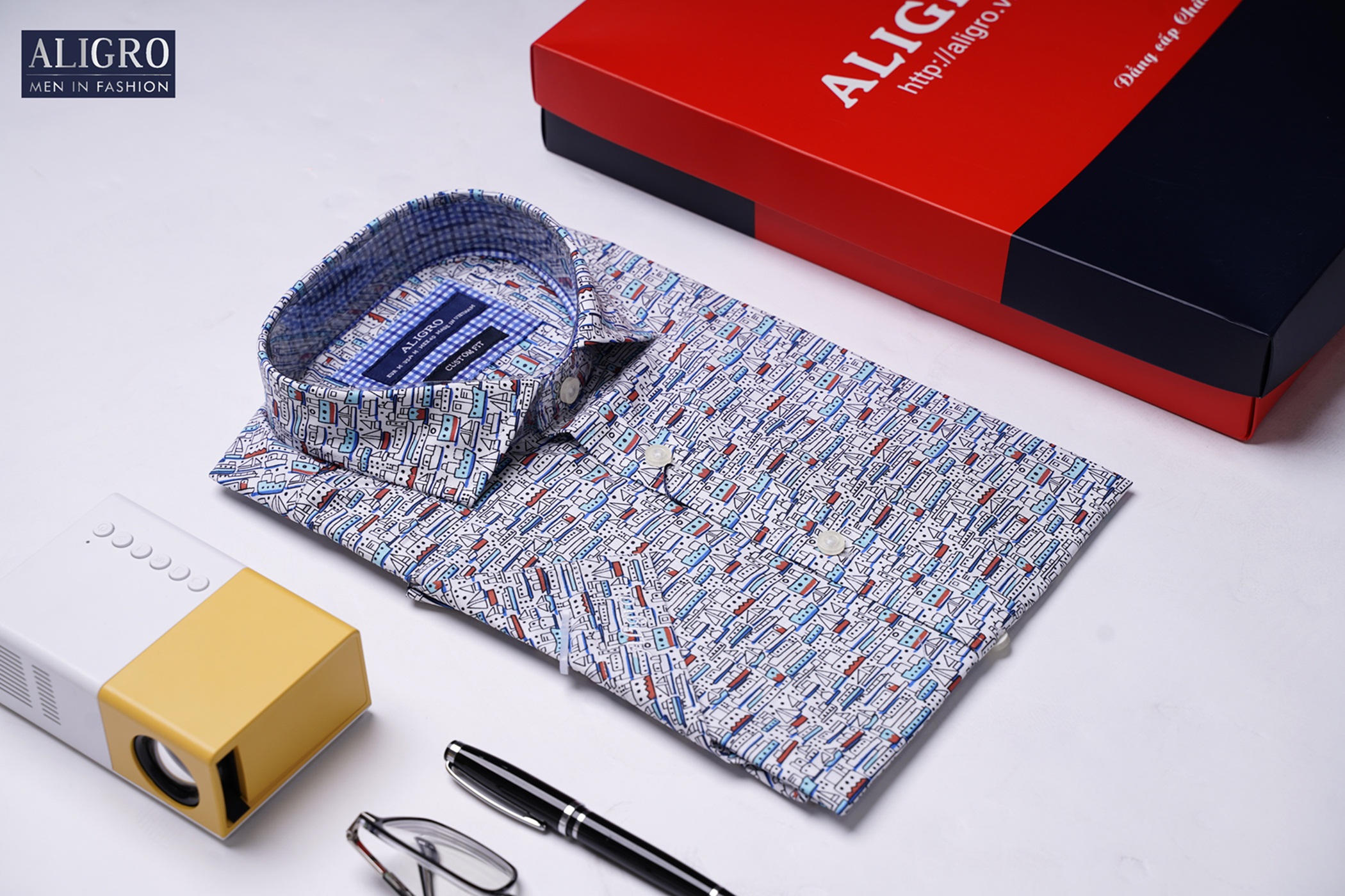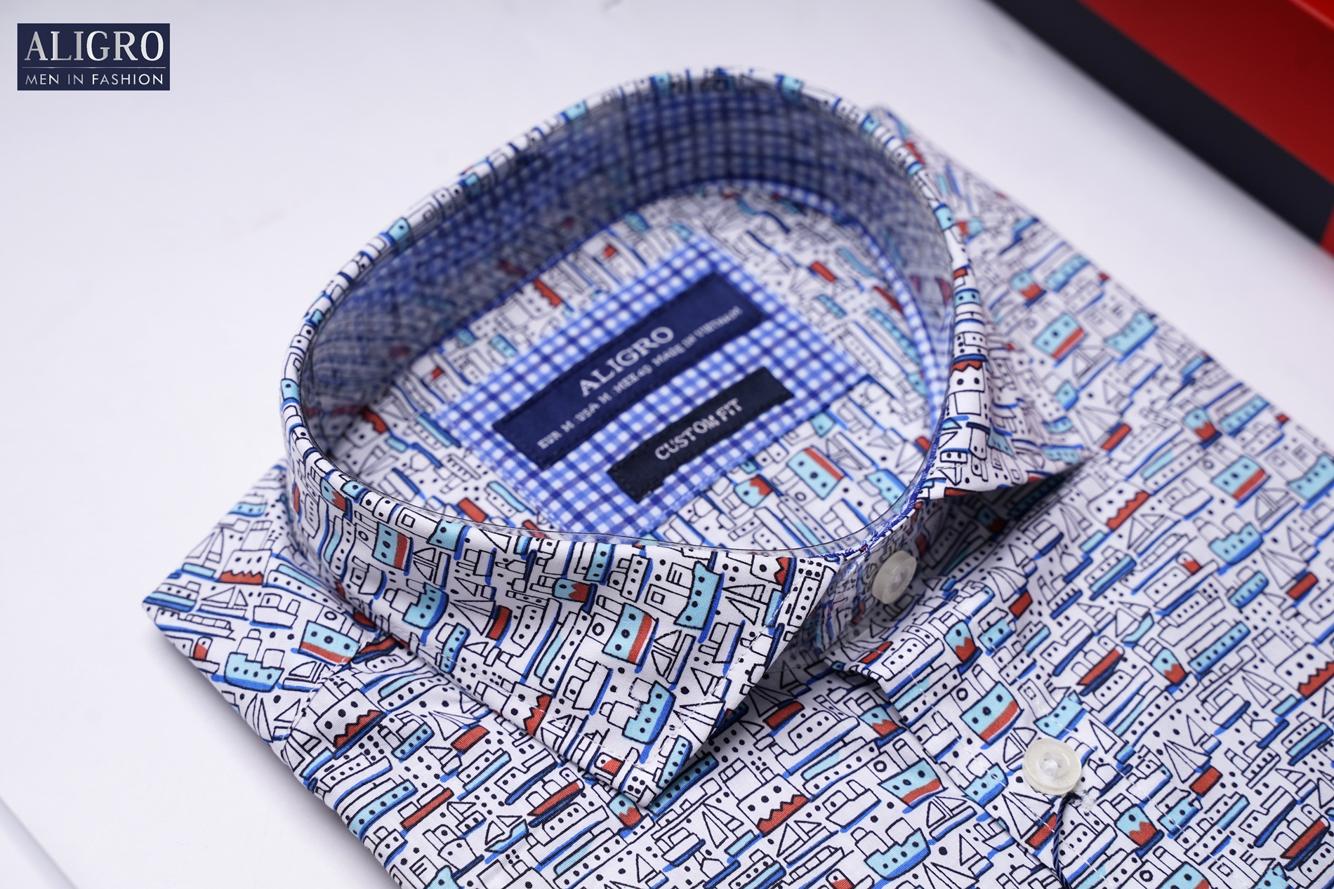 Áo sơ mi nam ngắn tay cao cấp Aligro ALGS-C87 vải cotton form Customfit hoạ tiết thuyền