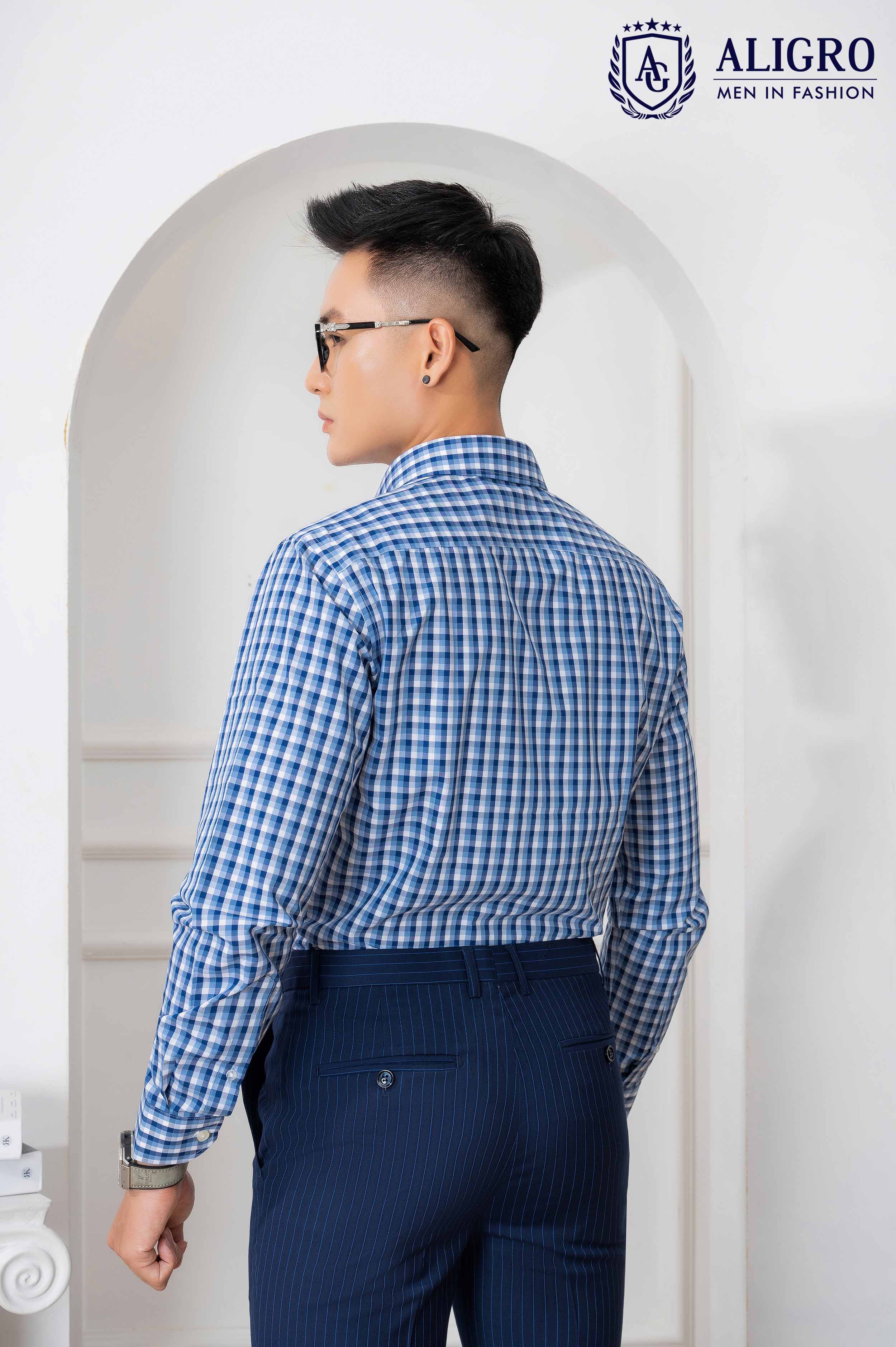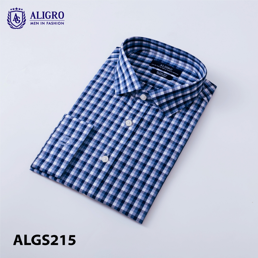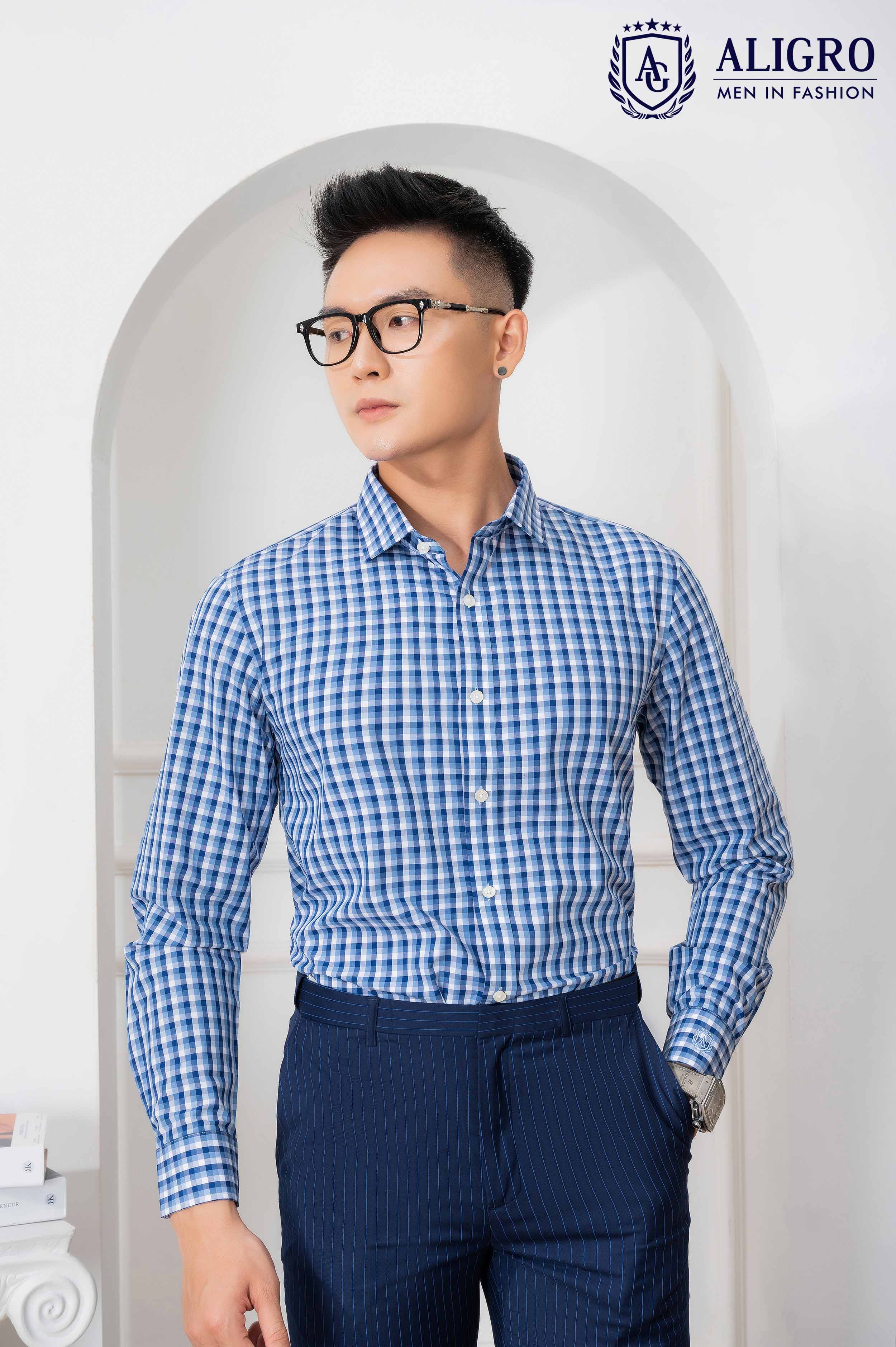 Áo sơ mi nam dài tay cao cấp Aligro ALGS215 chất liệu vải BAMBOO form SLIMFIT kẻ caro xanh