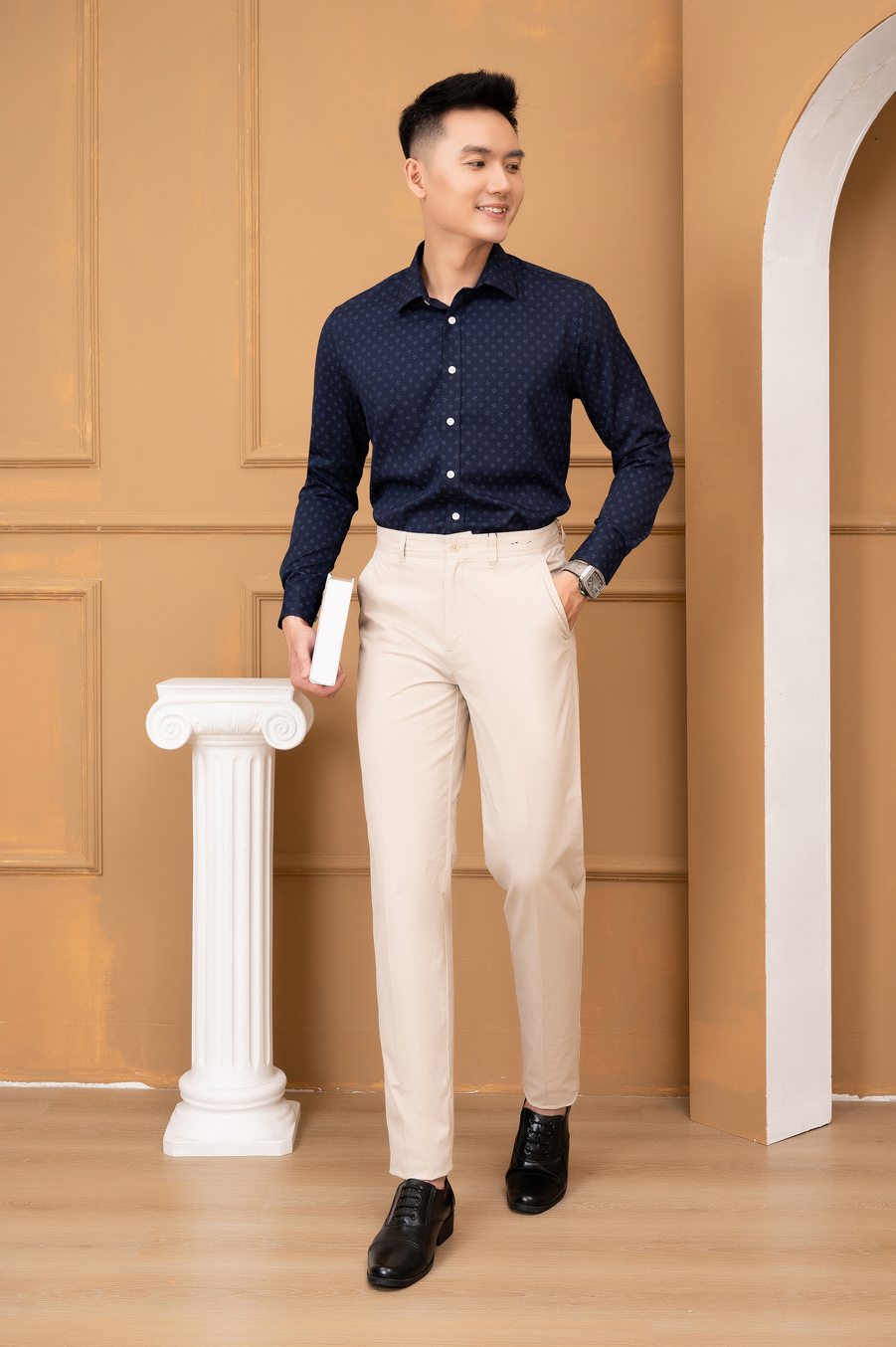 + Áo Sơ mi phom dáng Slimfit ôm nhẹ cơ thể, giúp tôn lên vóc dáng gọn gàng nhưng vẫn đảm bảo sự thoải mái khi mặc.