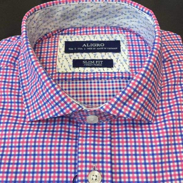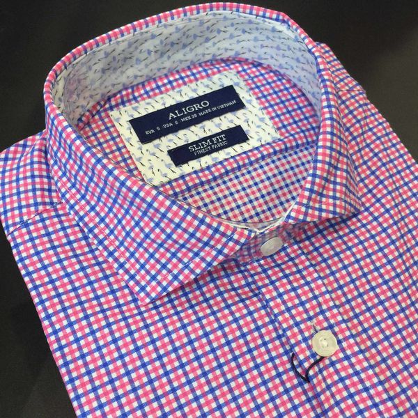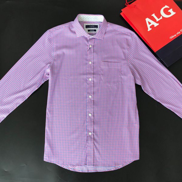 Áo sơ mi dài tay công sở cao cấp Aligro ALGS178 dáng Slimfit màu hồng kẻ caro