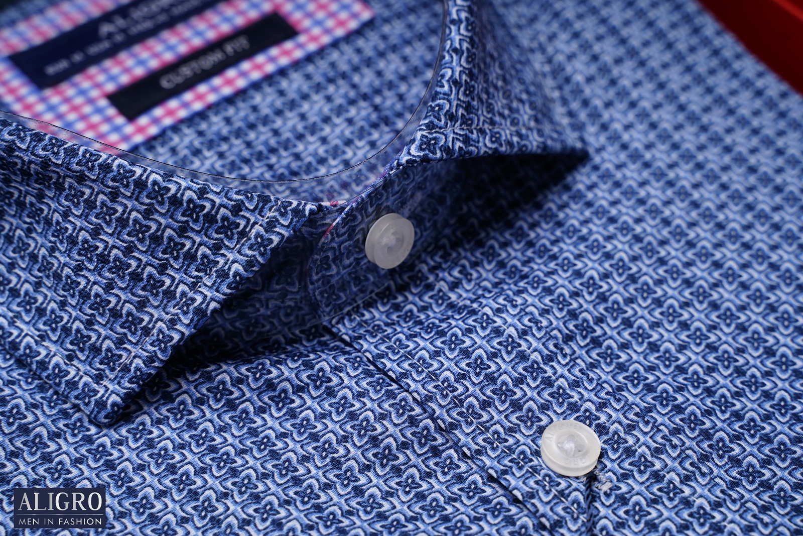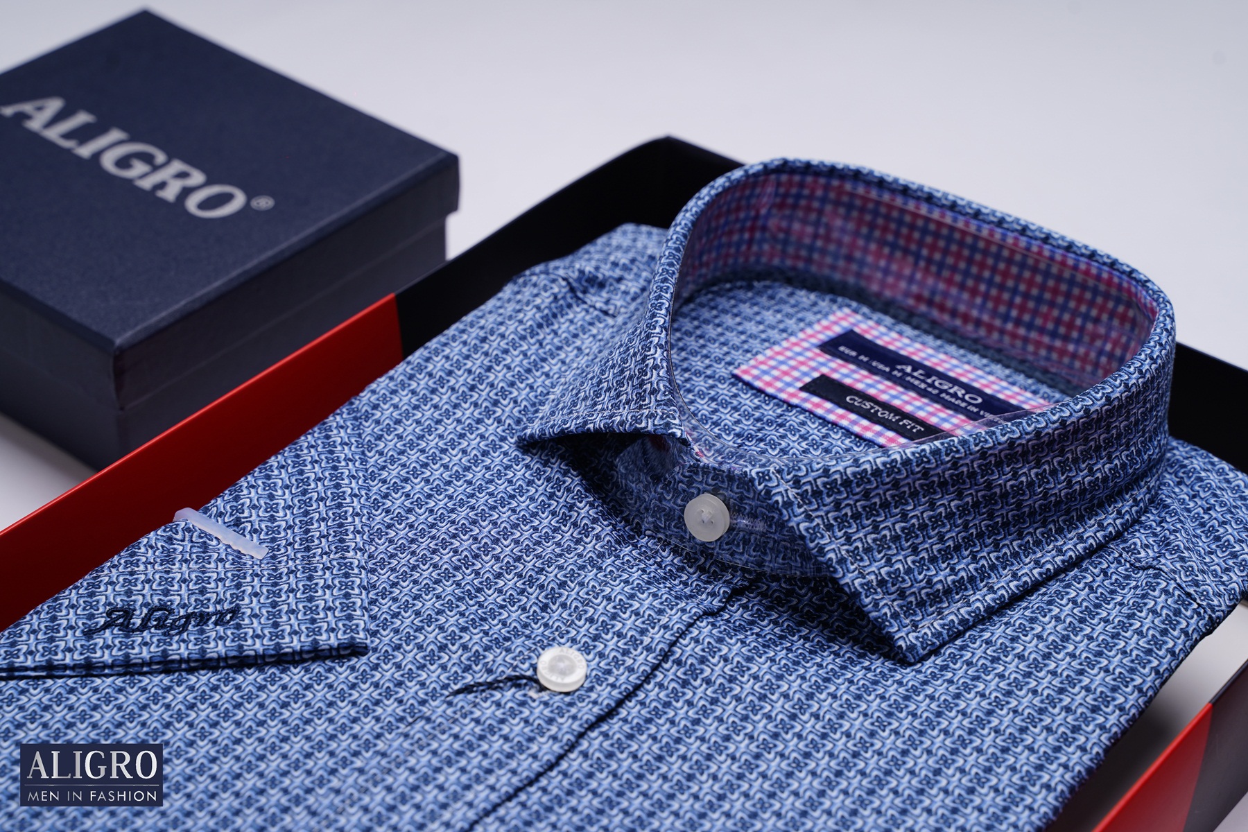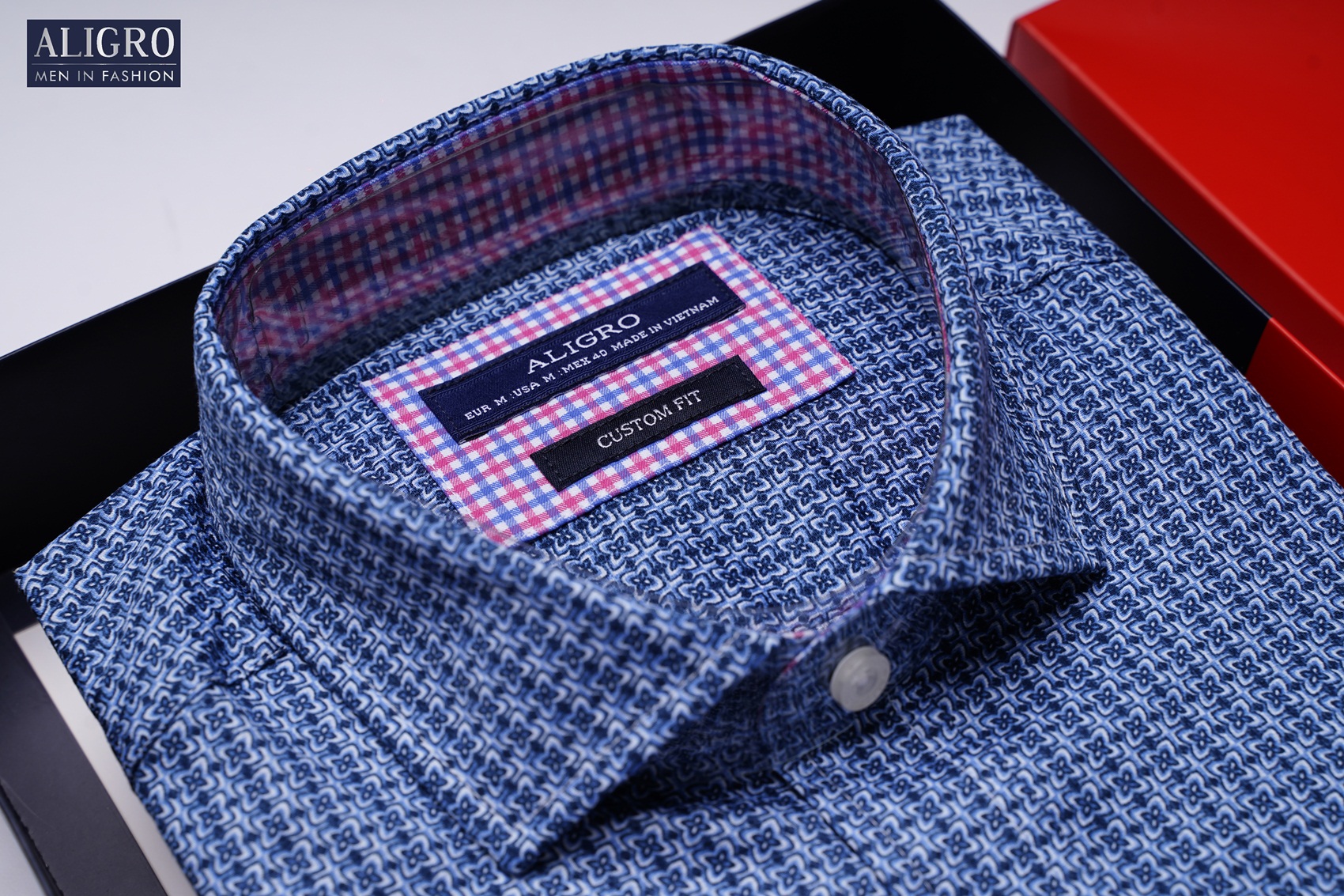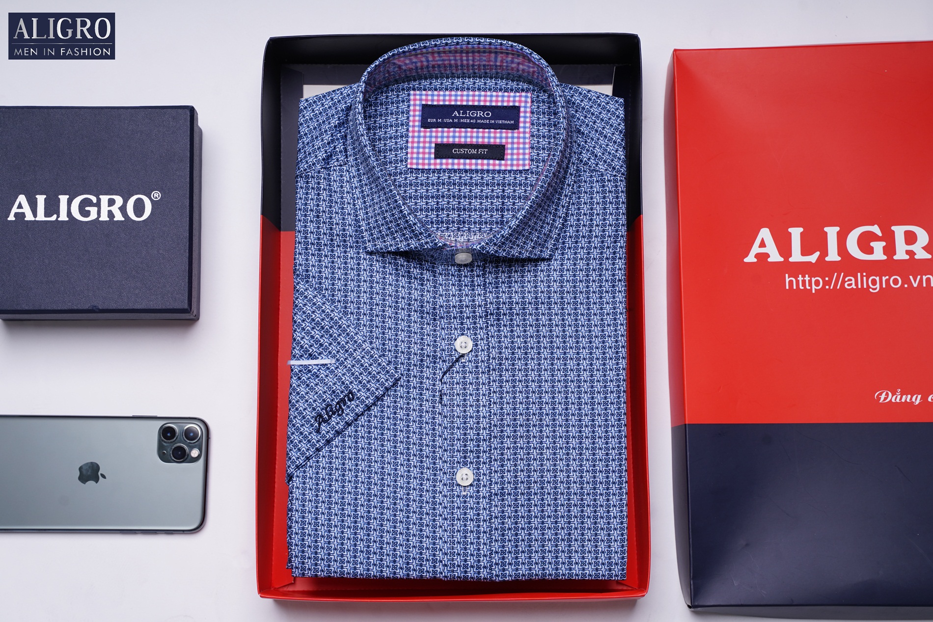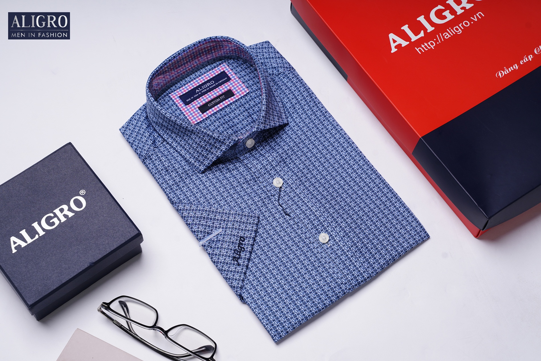 Áo sơ mi nam ngắn tay cao cấp Aligro ALGS-C88 vải cotton form Customfit màu xanh hoa