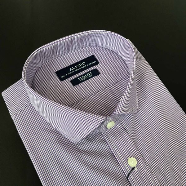 Áo sơ mi nam ngắn tay cao cấp Aligro ALGS-C98 chất liệu cotton form SLIMFIT kẻ caro tím