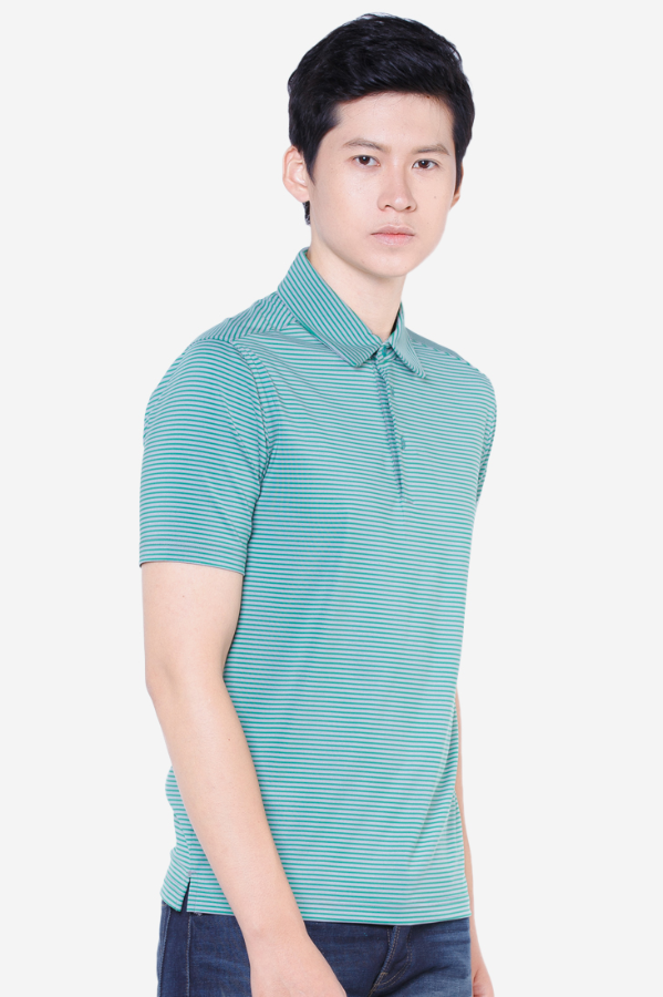 Áo polo nam ngắn tay cao cấp Aligro ALGAPC020 chất liệu vải coolmax form SLIMFIT kẻ ngang màu xanh