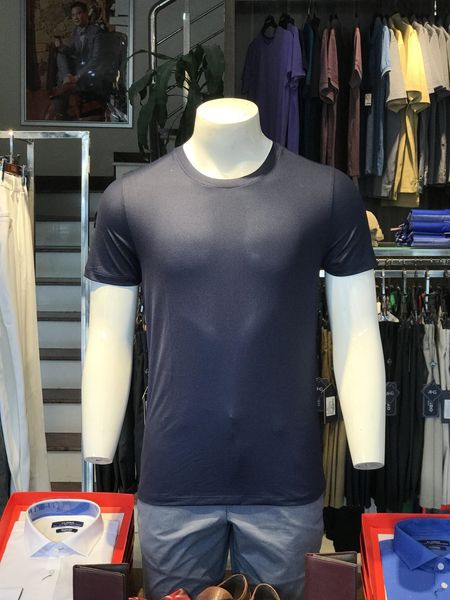 Áo thun nam cổ tròn ngắn tay cao cấp Aligro ALGAPC48 chất liệu cotton form SLIMFIT màu navy