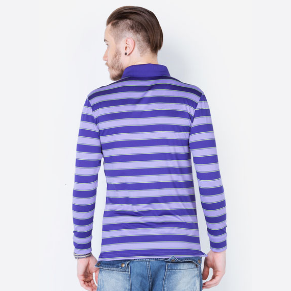 Áo thun dài tay nam cao cấp ALIGRO cổ bẻ co giãn, thoáng khí kẻ tím ALGAPD011