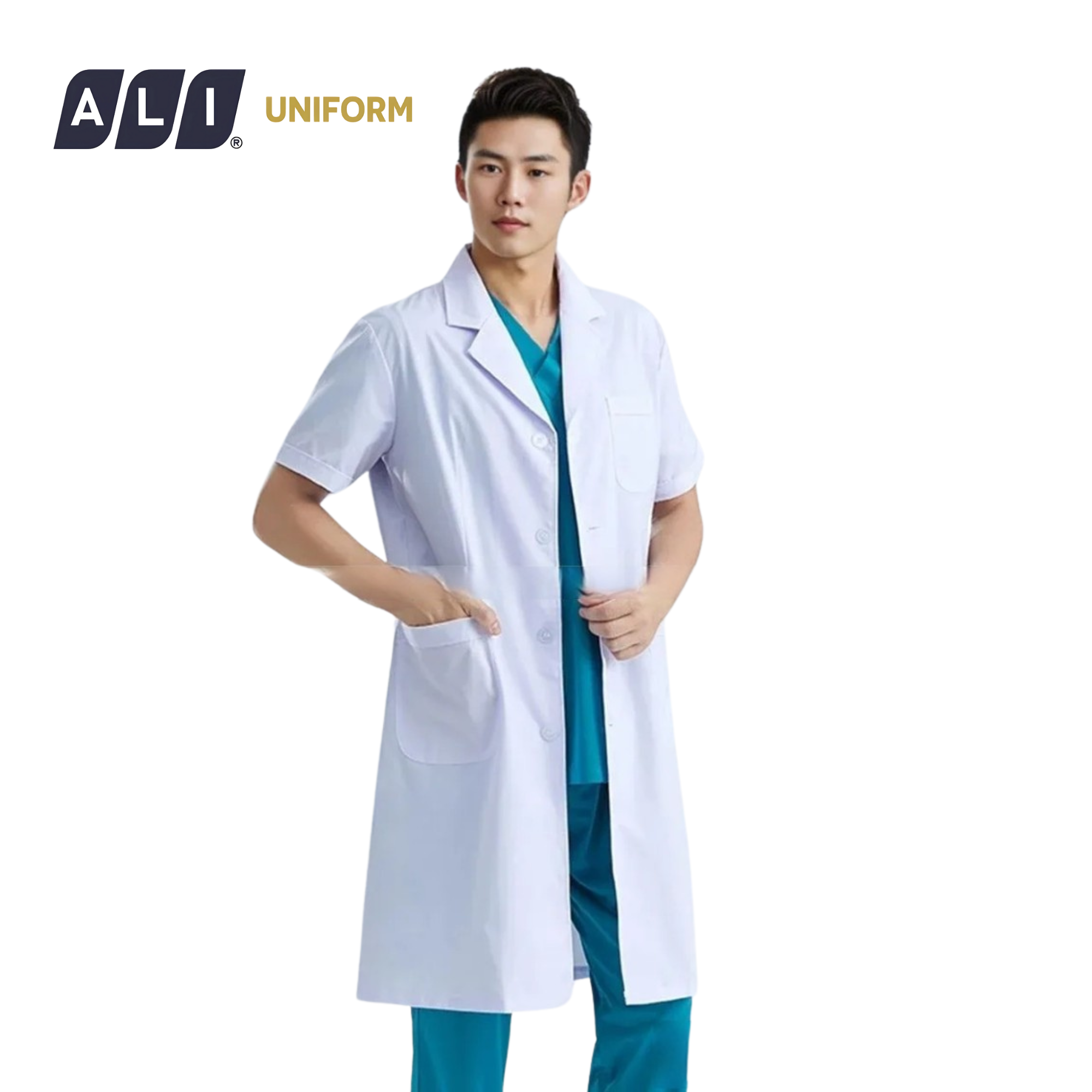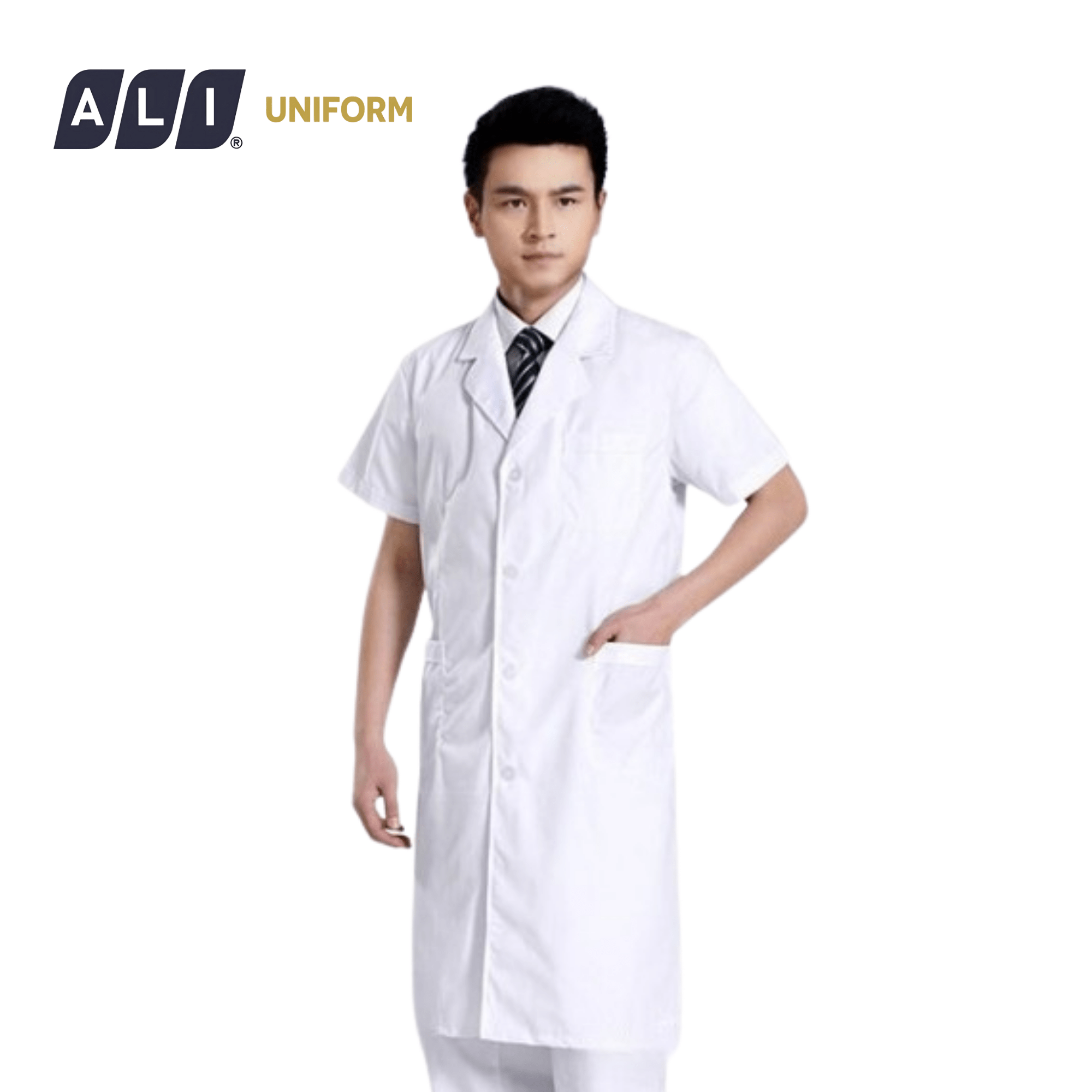 - Thiết kế: Áo blouse trắng dáng suông, mang đến sự thoải mái và chuyên nghiệp cho nhân viên y tế. Thiết kế gồm hai túi sườn tiện dụng và một túi ngực để cài bút hoặc thẻ tên.