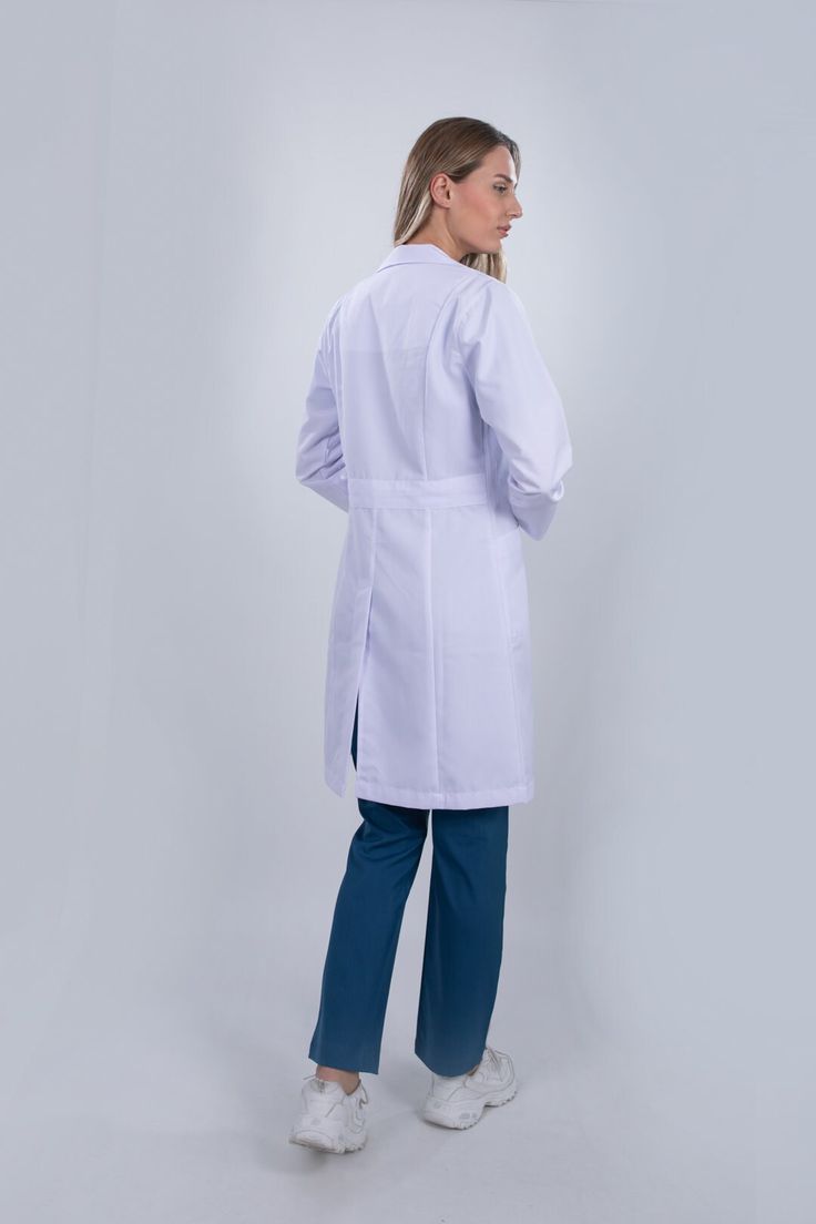 Mẫu áo blouse trắng tay ngắn/dài bác sỹ, dược sỹ, y tá với thiết kế cổ bẻ Danton theo phong cách đơn giản. Với màu trắng truyền thống của màu áo blouse cùng form dáng thoải mái dễ chịu trong suốt quá trình làm việc. Thiết kế đơn giản với áo khuy cài giữa, có diễu trước, tạo form dáng cho áo vừa vặn với từng dáng người. Phía hai bên áo là hai túi vuông, có túi ngực cài bút hoặc treo thẻ tên, xẻ tà sau. Một số mẫu thiết kế đai lưng phong cách