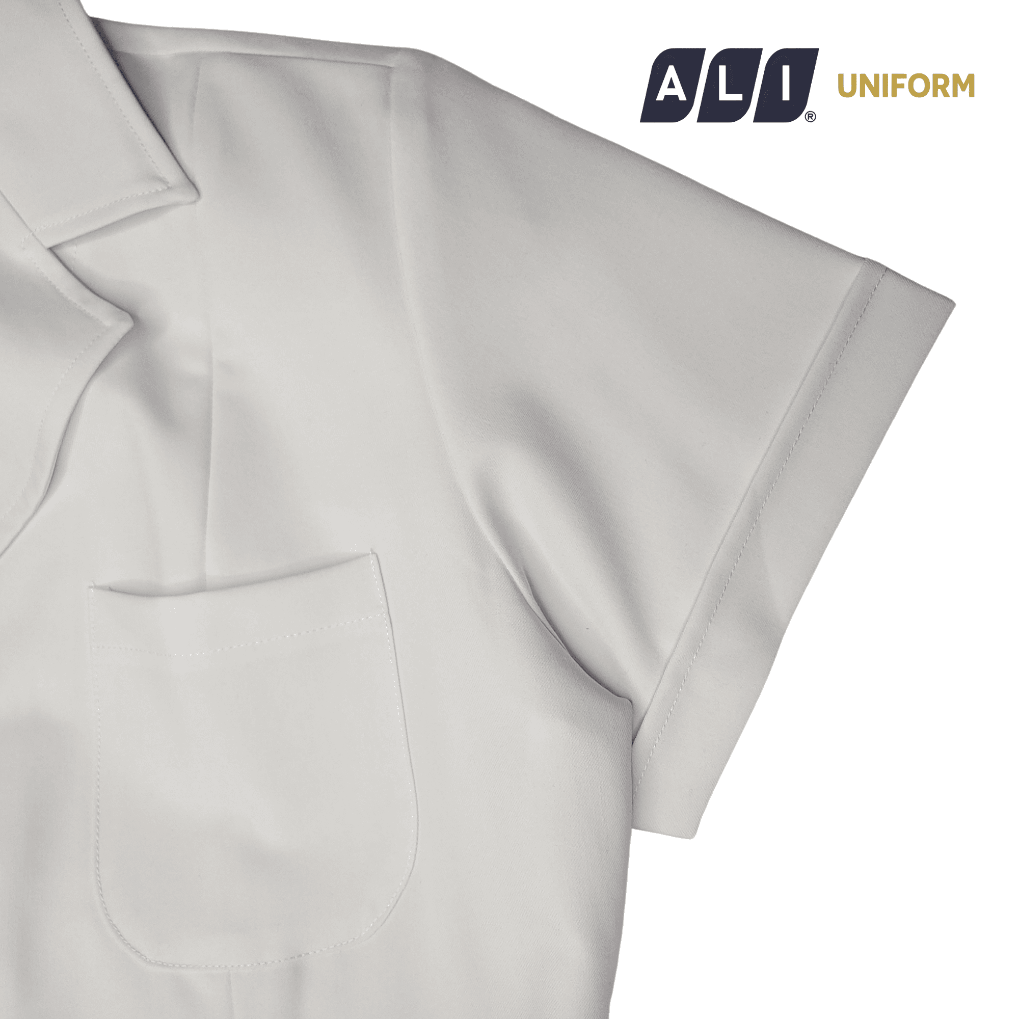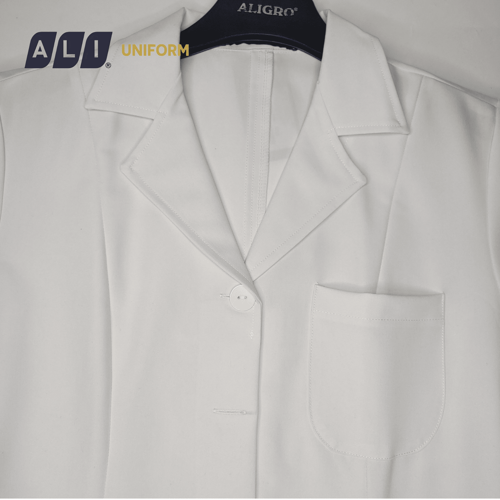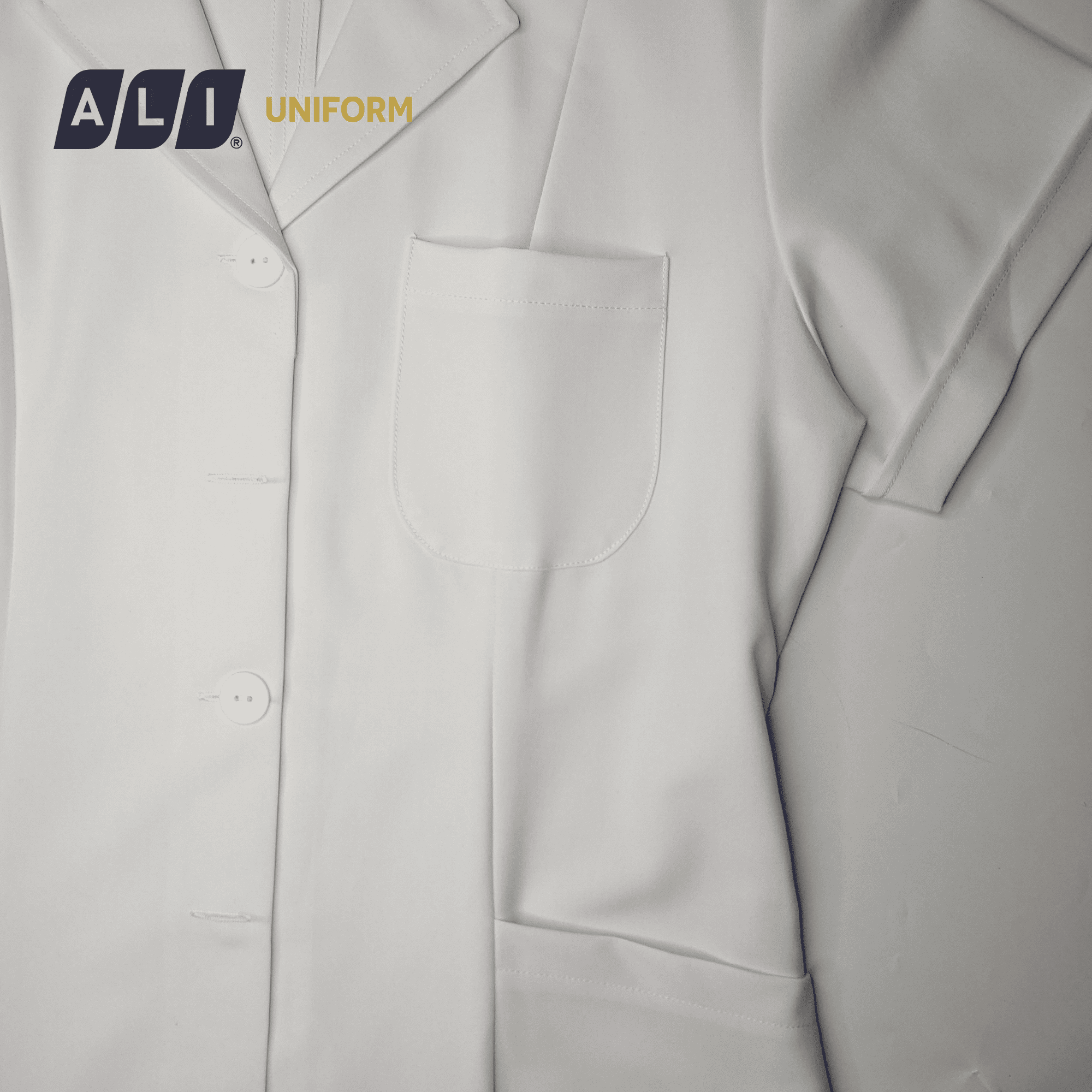 Áo điều dưỡng, áo blue trắng cộc tay, không lé chất vải kaki chun hàn cho bác sĩ, dược sĩ, spa Aligro BV.CA.ADD.KK.C1