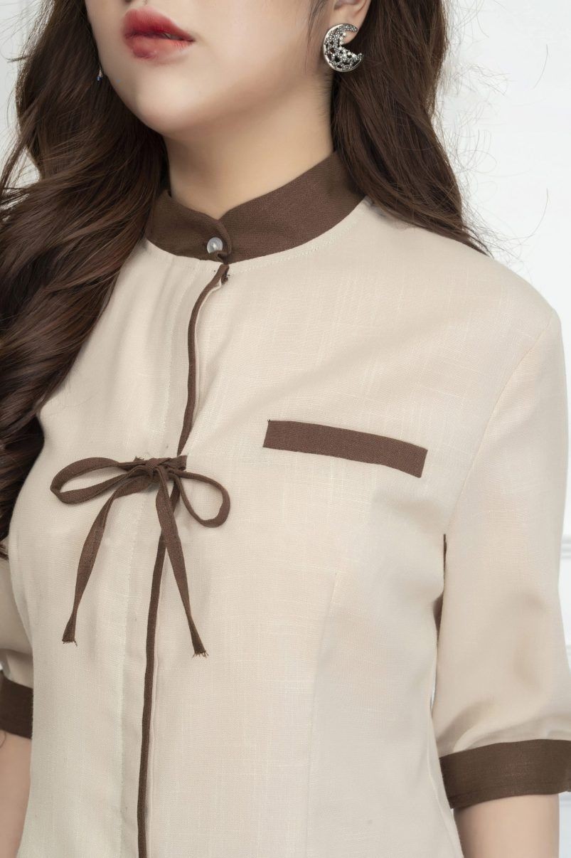 Đồng phục spa cổ tàu màu nâu