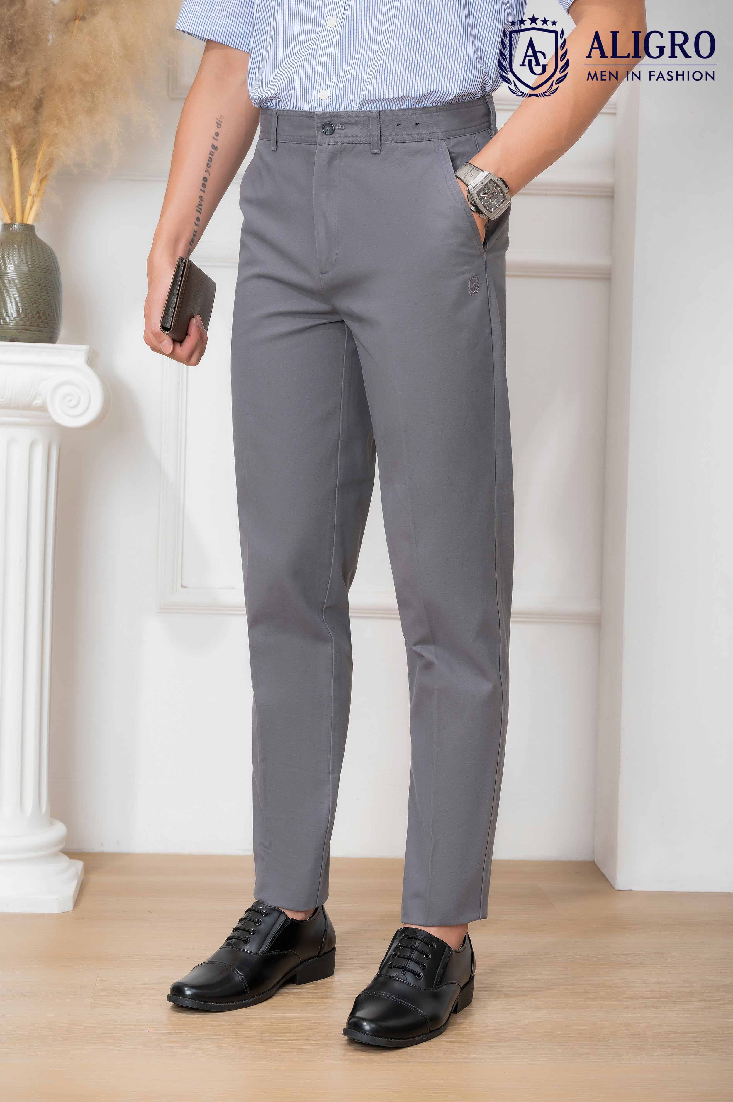 Quần kaki nam công sở cao cấp Aligro ALGK058 co giãn 4 chiều màu ghi đậm