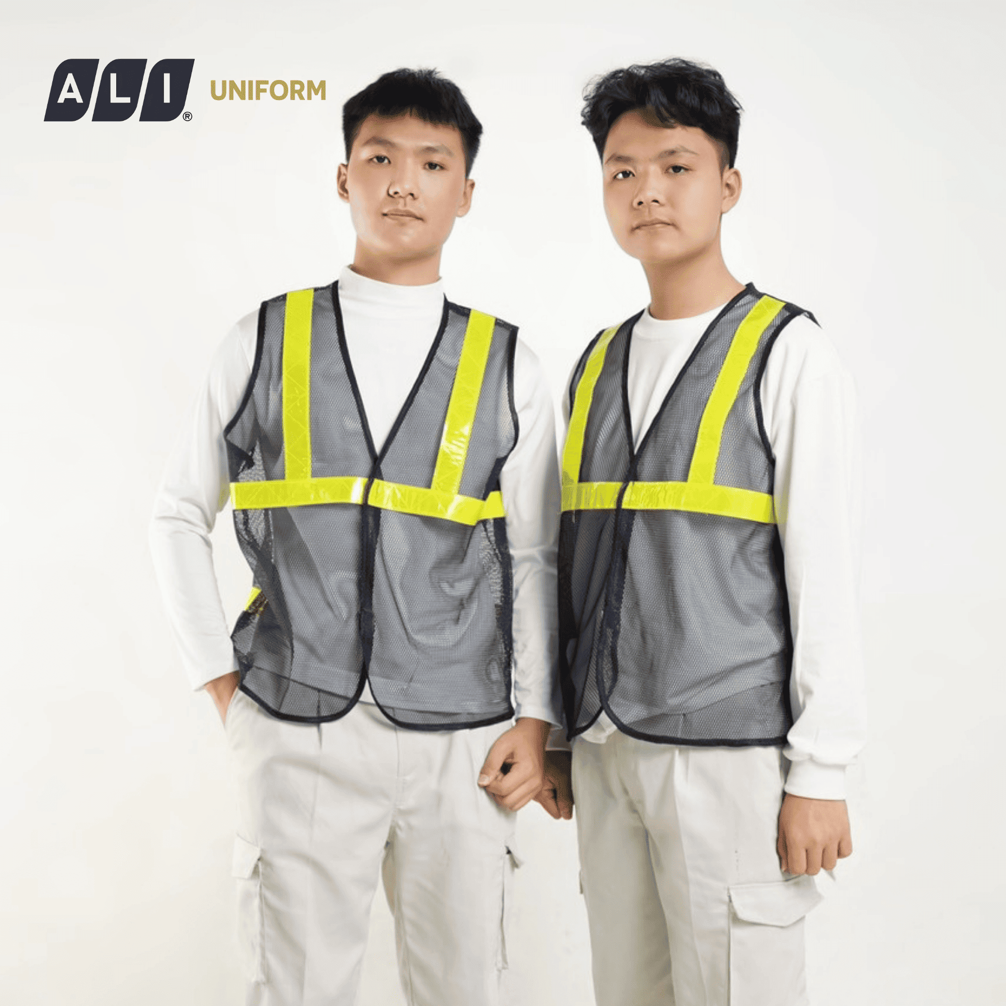 - Thiết kế: Áo may dây phản quang trước ngực và phía sau