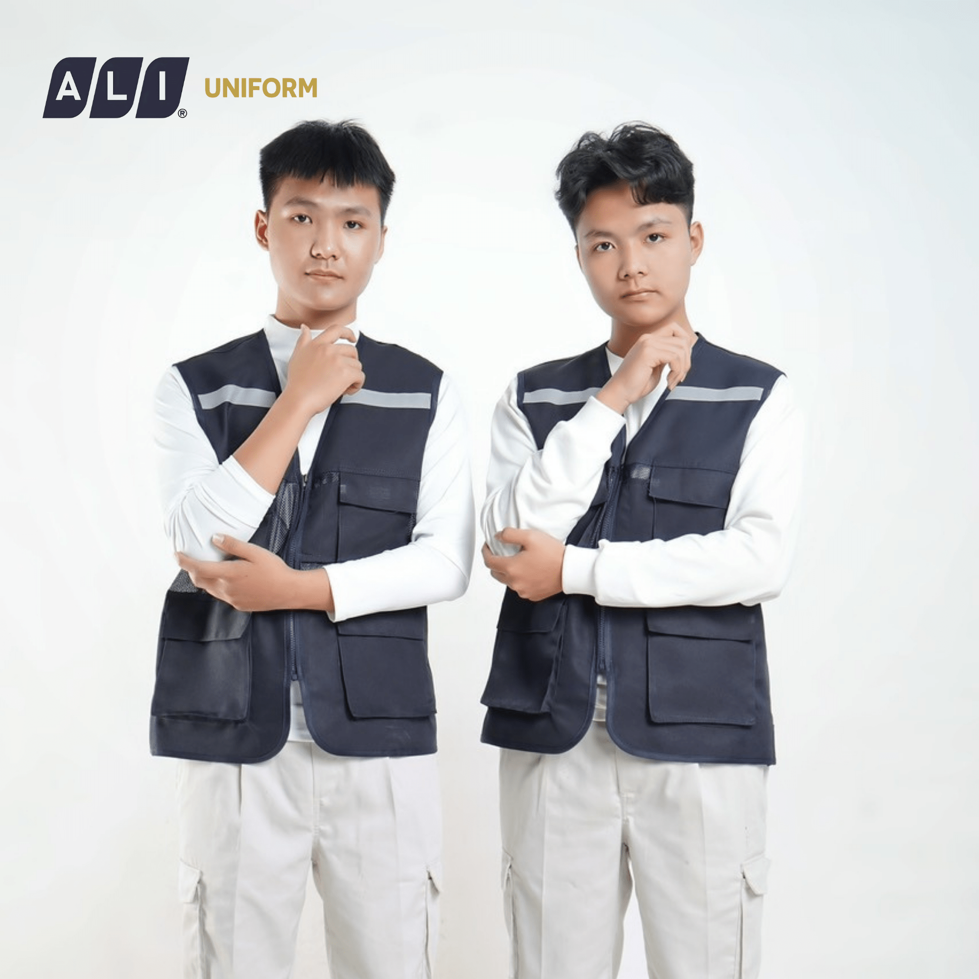 - Chất liệu: Vải kaki hoặc vải lưới, thêm sợi phản quang