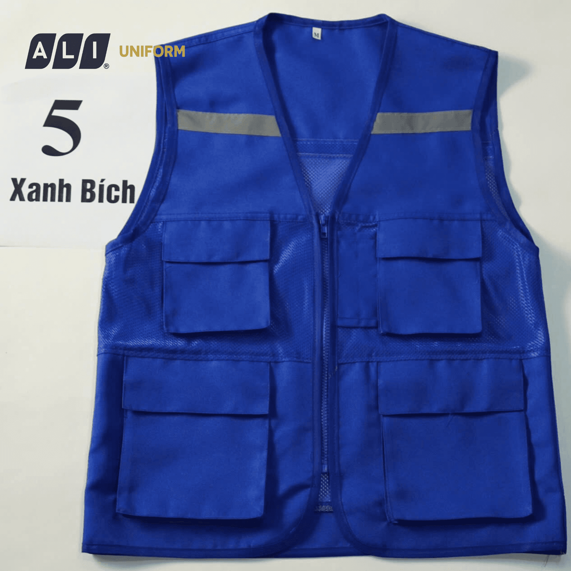 Áo gile bảo hộ lao động phản quang 4 túi chất vải kaki hoặc lưới thoáng mát, thấm hút tốt màu xanh bích GLBH.FFD4TXB.05