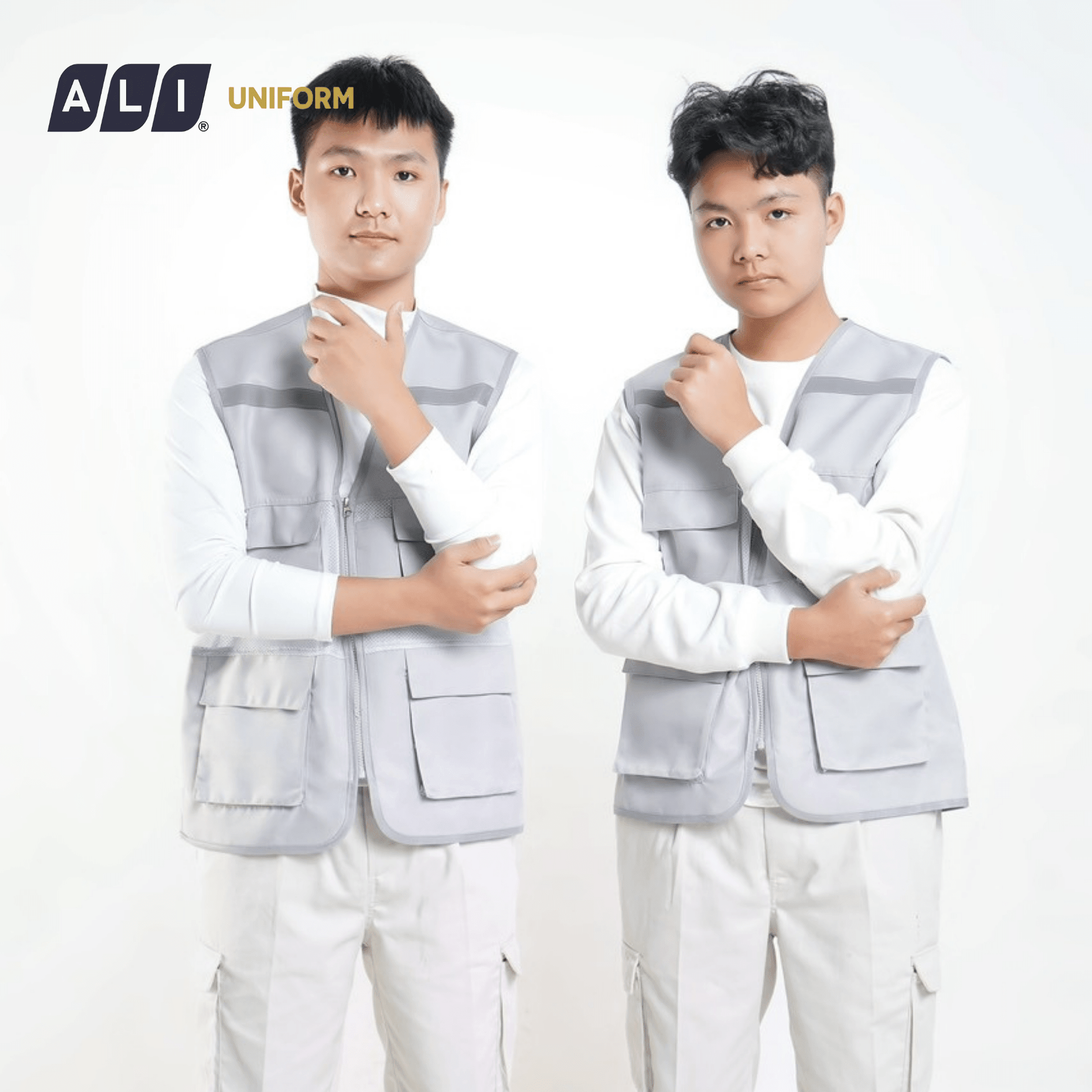 - Chất liệu: Vải kaki hoặc vải lưới, thêm sợi phản quang