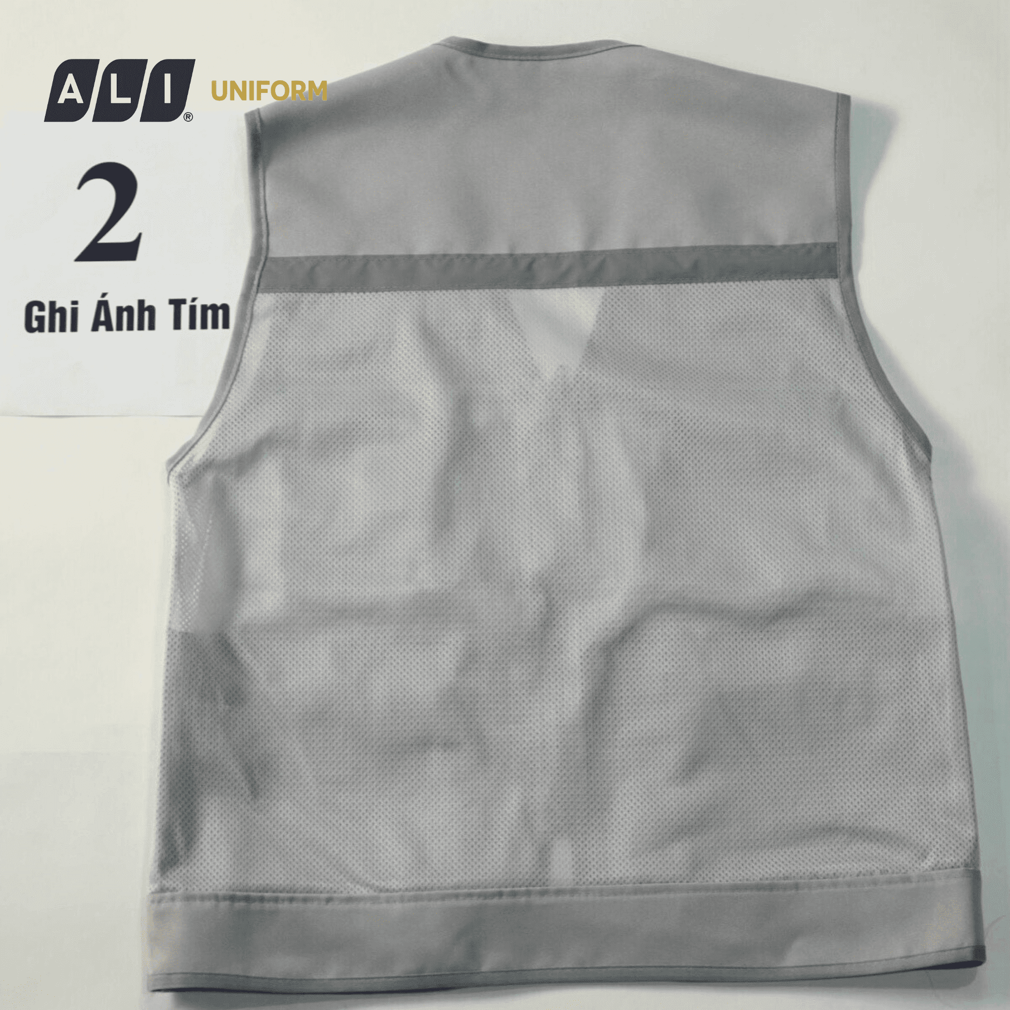Áo gile bảo hộ lao động phản quang 4 túi chất vải kaki hoặc lưới thoáng mát, thấm hút tốt màu GHI ÁNH TÍM GLBH.FFD4TGAT.02