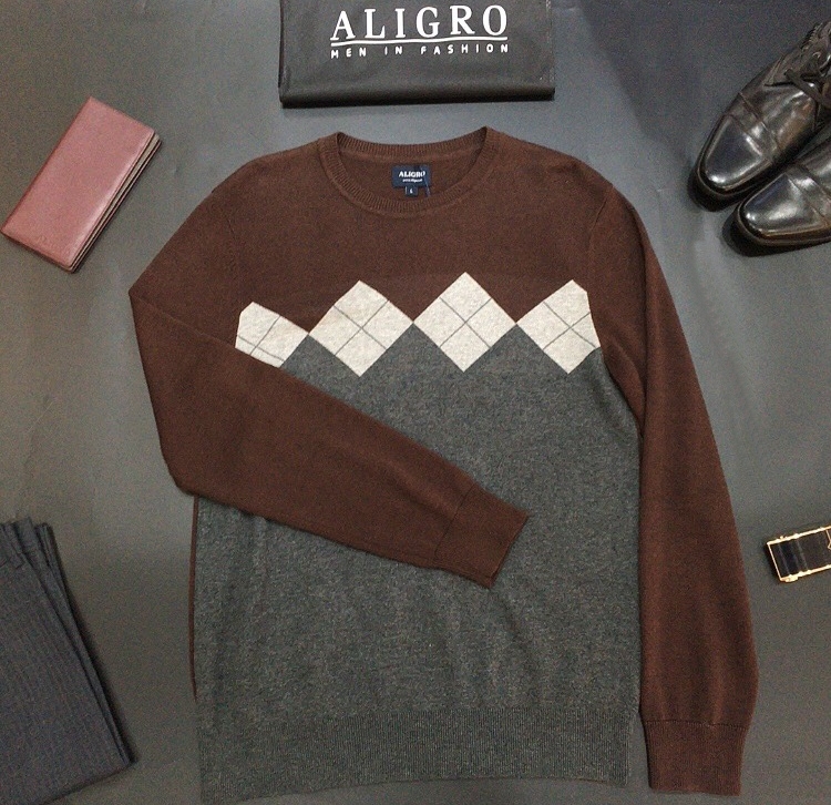 Áo len nam Aligro ALEND014 cổ tròn phối màu xám nâu được may từ chất liệu len mềm nhẹ, không bai không xù, giữ ấm nhưng vẫn thoáng khí, mang đến cho phái mạnh sự thoải mái tối đa.