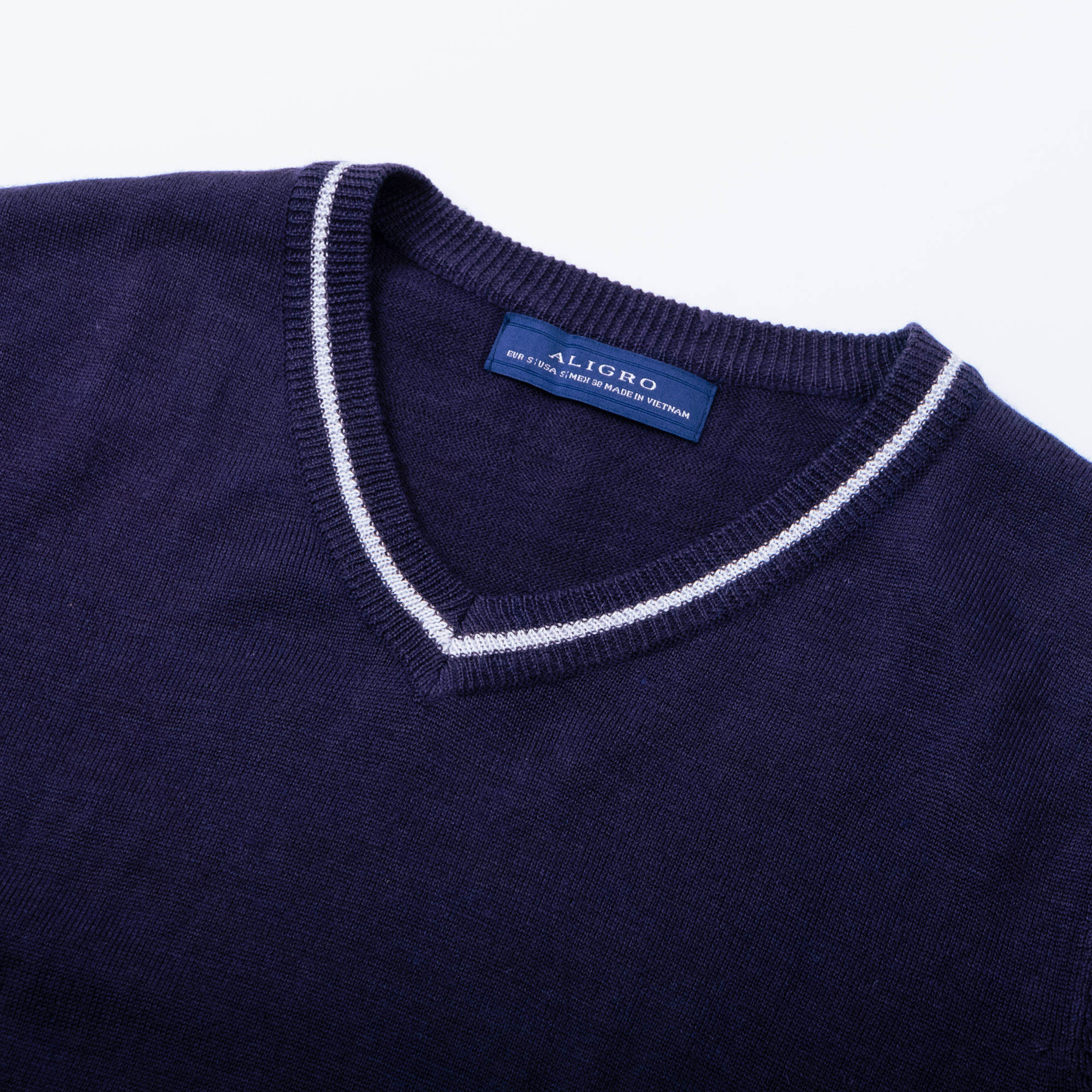 - Thiết kế cổ tim phối viền trắng, bo gấu áo và cổ tay phối viền trắng. Chất len co giãn thoải mái, không bai xù. Dễ dàng kết hợp với mọi loại trang phục.