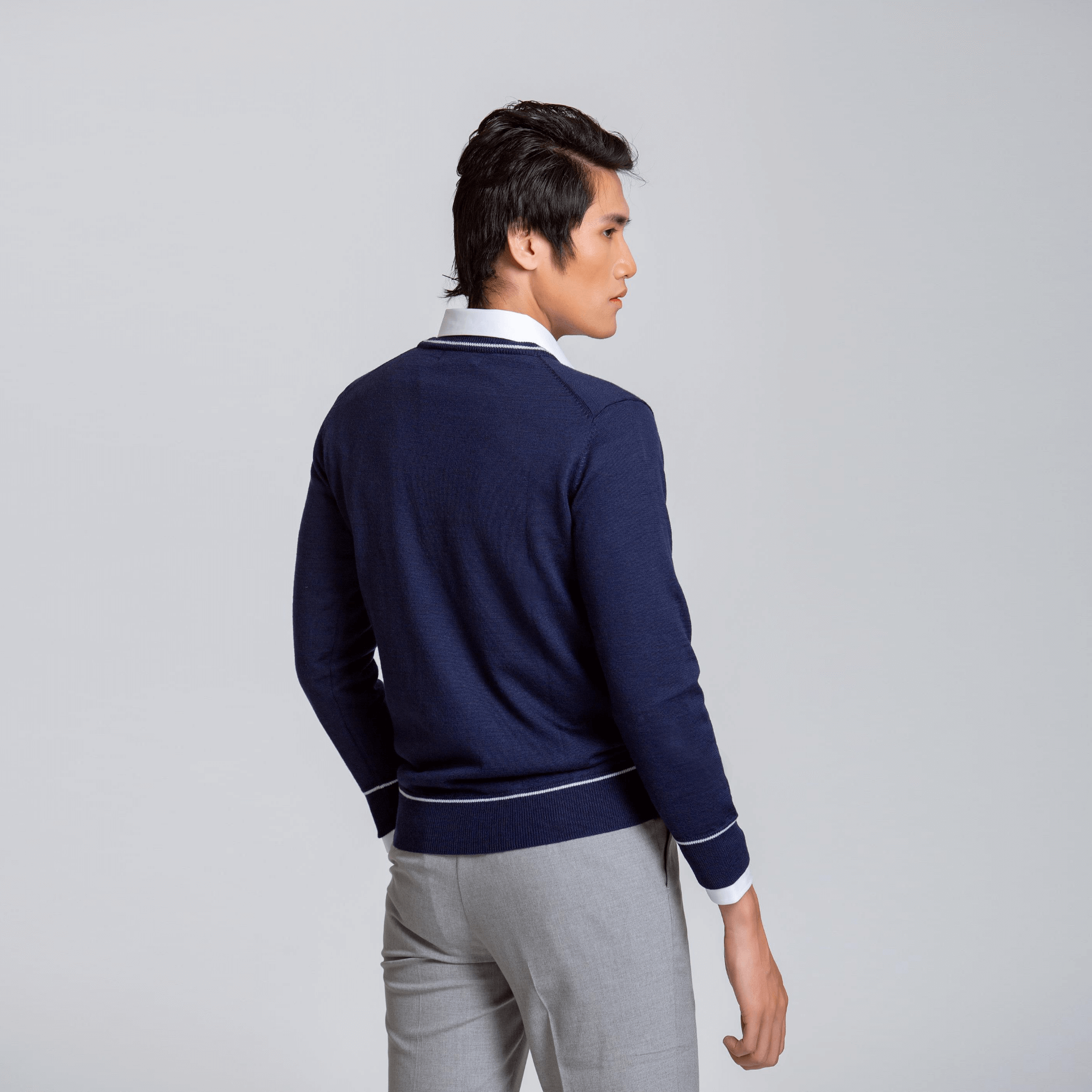 KIỂU DÁNG: SLIM FIT CHI TIẾT: - Áo len trung dáng Slim fit ôm dáng vừa vặn. - Thiết kế cổ tim phối viền trắng, bo gấu áo và cổ tay phối viền trắng. Chất len co giãn thoải mái, không bai xù. Dễ dàng kết...