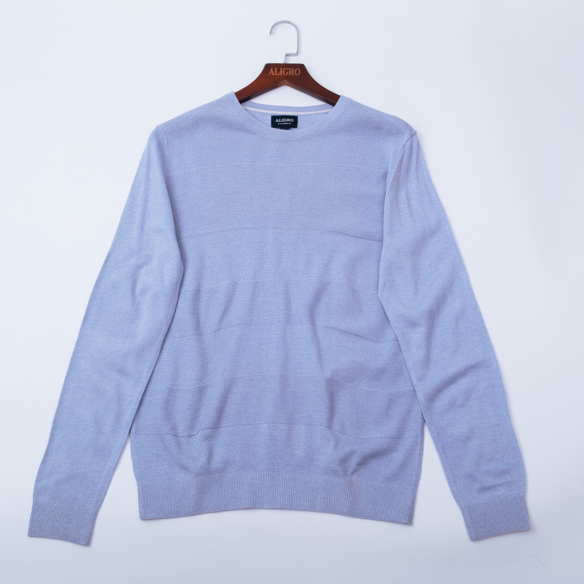 Áo len nam Aligro màu xanh da trời cổ tròn được may từ chất liệu vải len nhẹ mềm, thiết kế đơn giản cùng màu sắc trẻ trung sẽ là gợi ý hoàn hảo cho vẻ đẹp lịch lãm và nam tính.