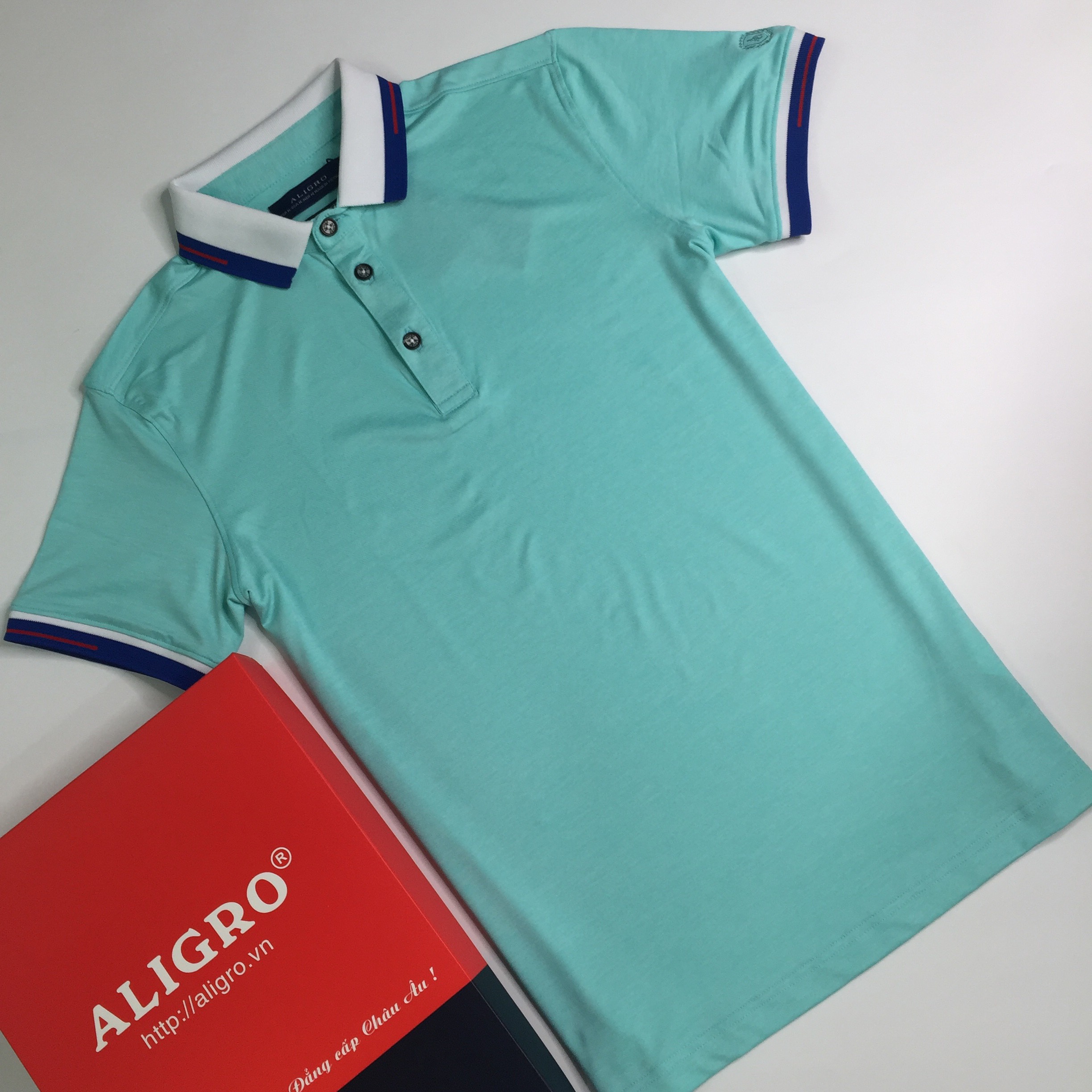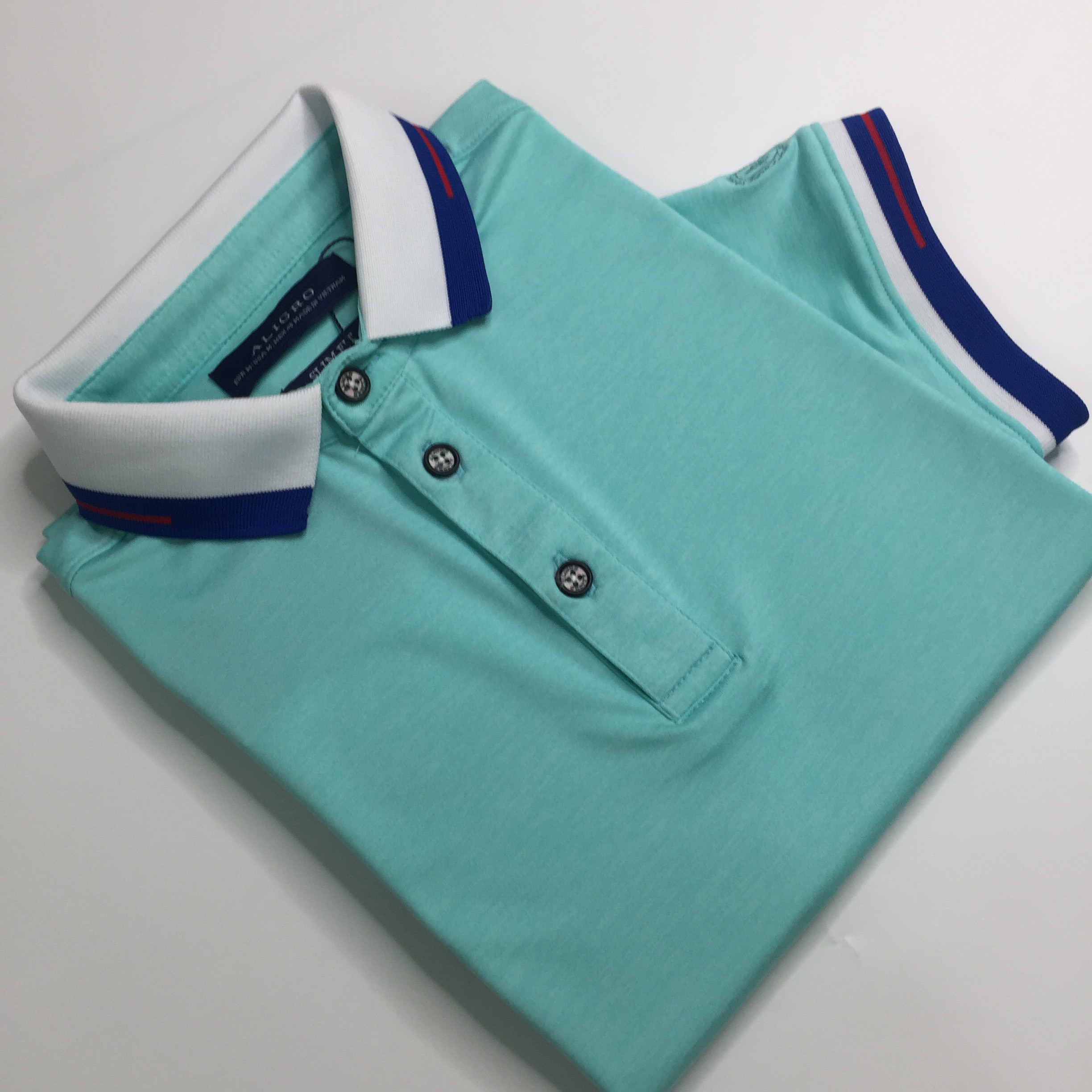 Áo polo nam ngắn tay cao cấp Aligro APLOUA010 chất liệu vải coolmax form SLIMFIT màu xanh nhạt