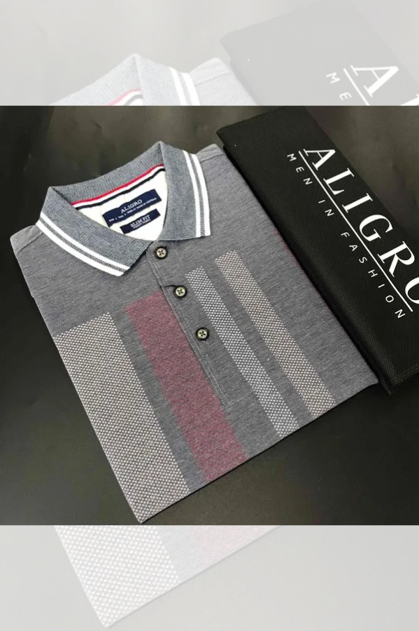 Áo polo nam ngắn tay Aligro cao cấp ALGPLO33 vải CVC cao cấp dáng slimfit màu ghi sáng hoạ tiết kẻ sọc