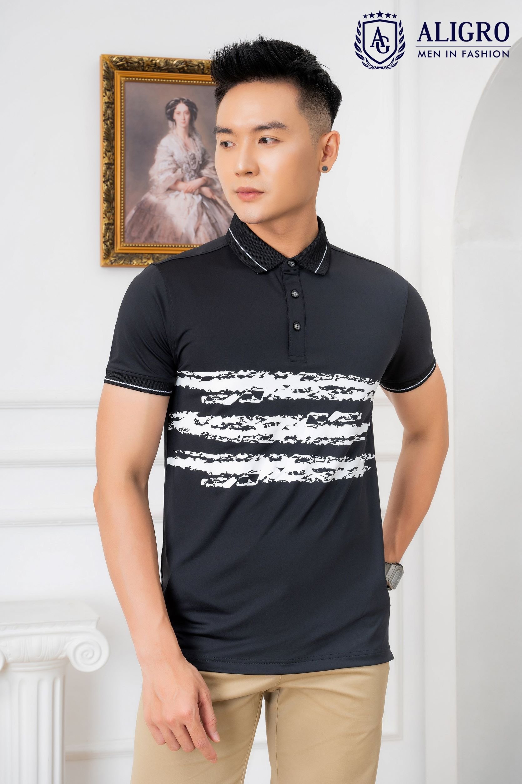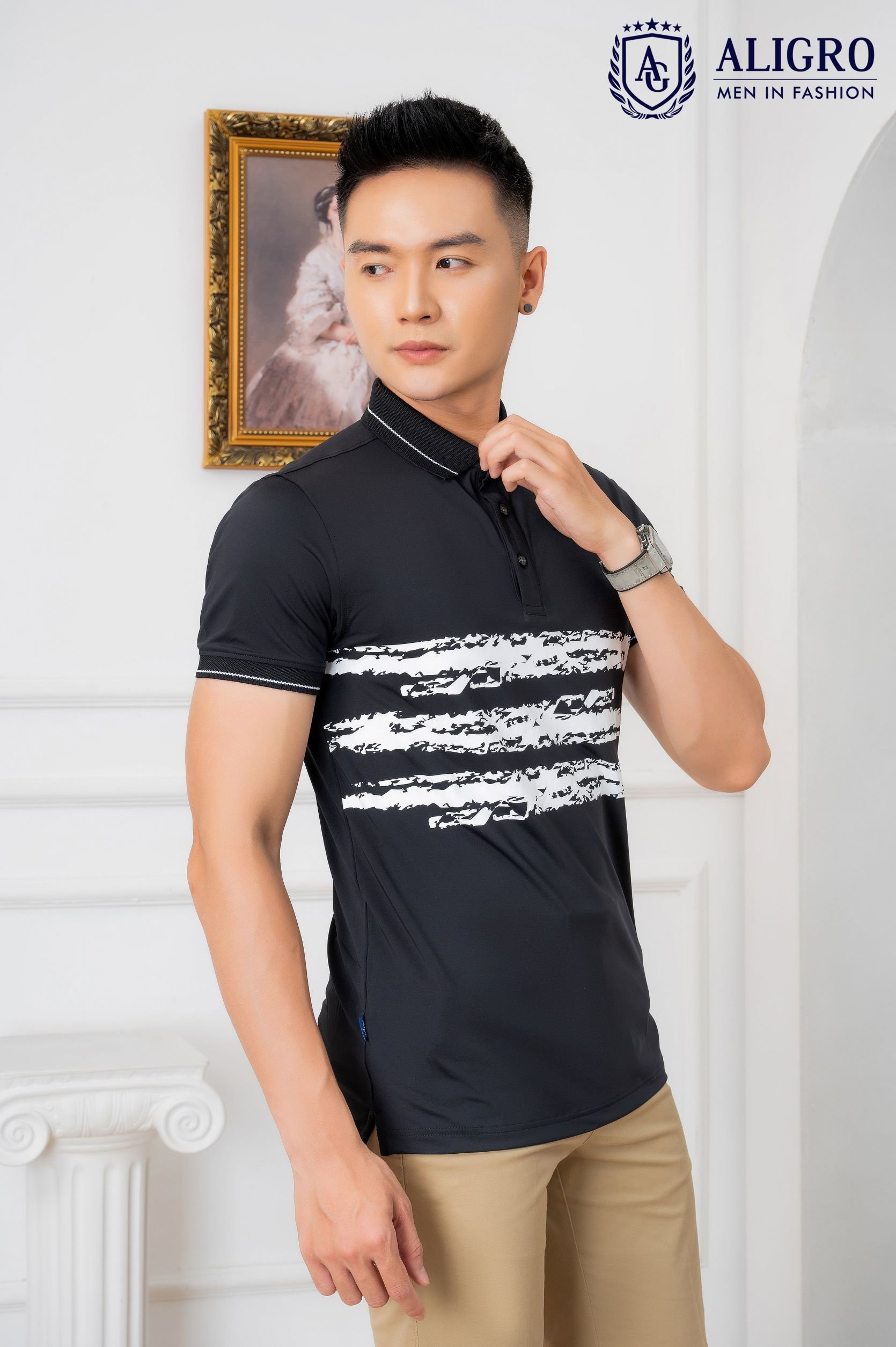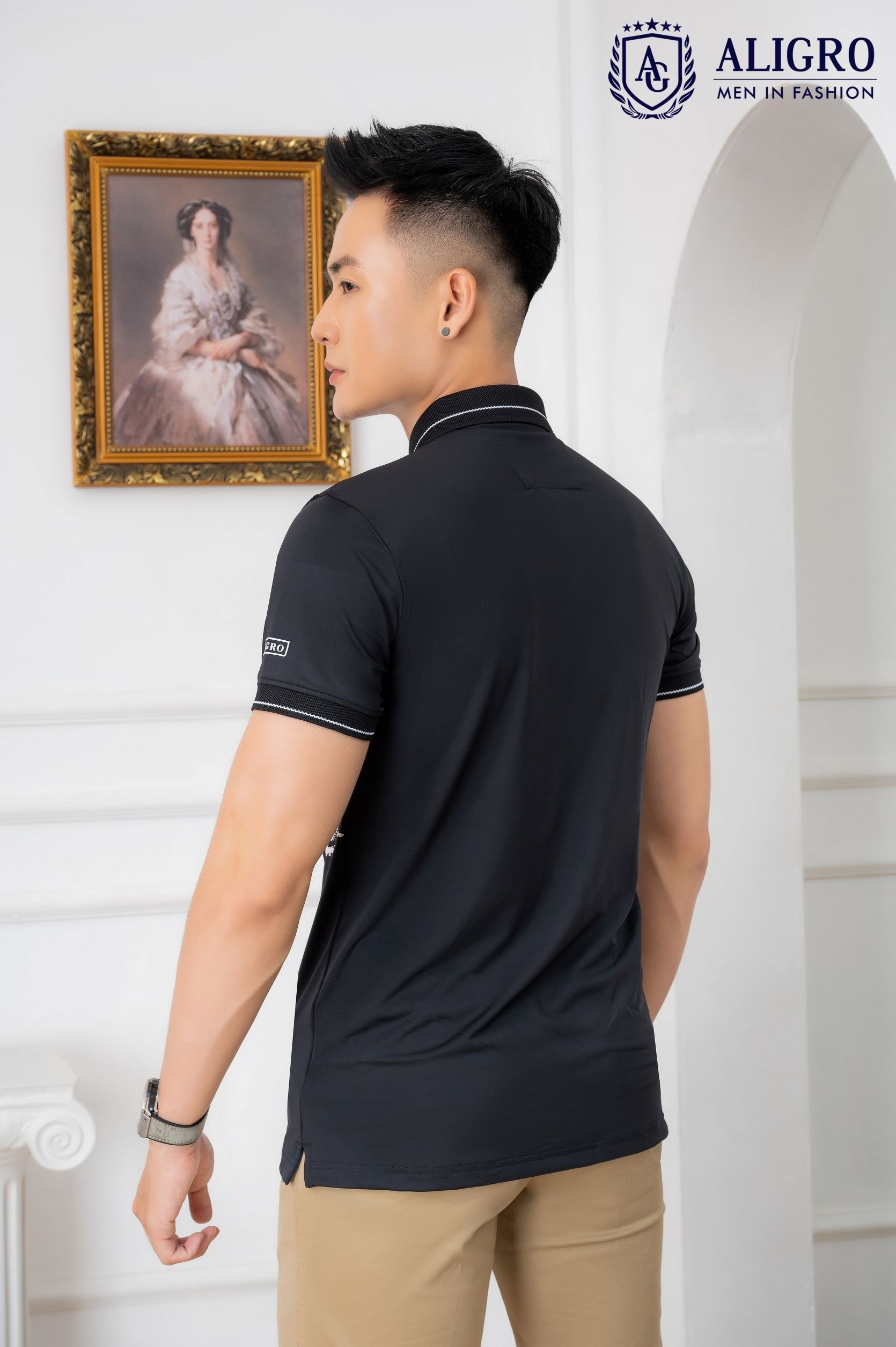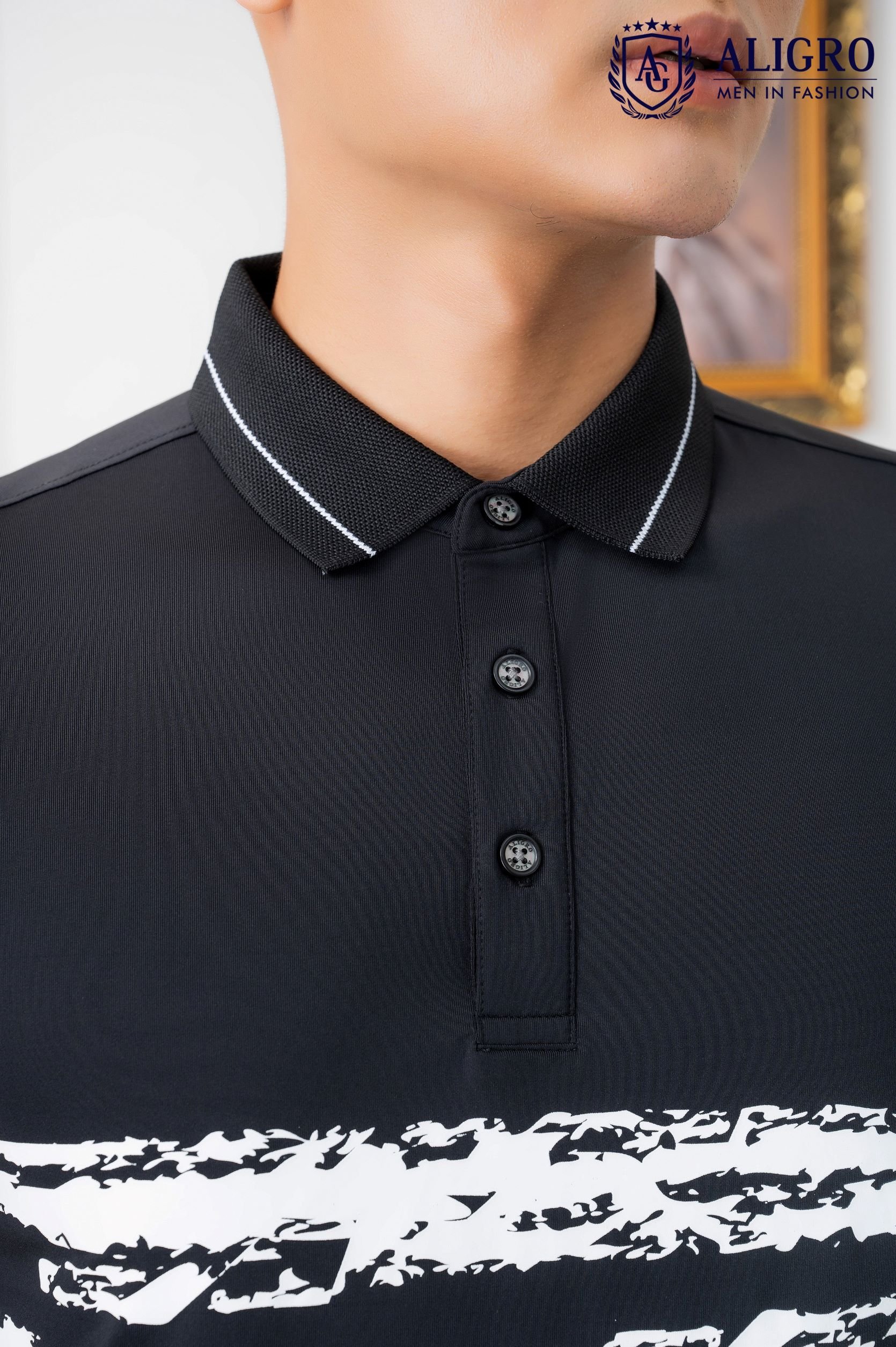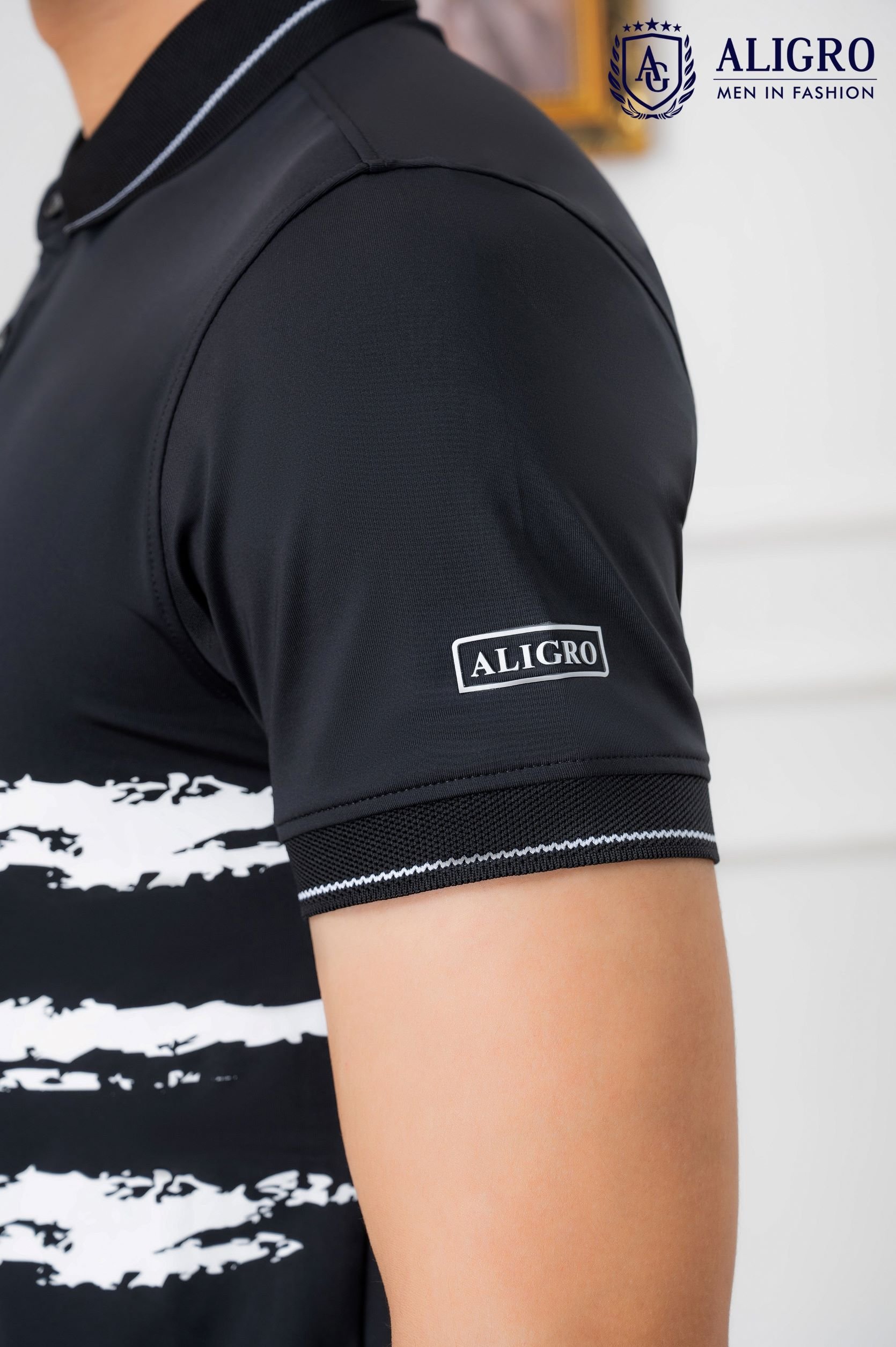 Áo polo Golf ngắn tay cao cấp Aligro ALGPLO73 vải thun lạnh COOLMAX dáng slimfit màu đen kẻ ngang
