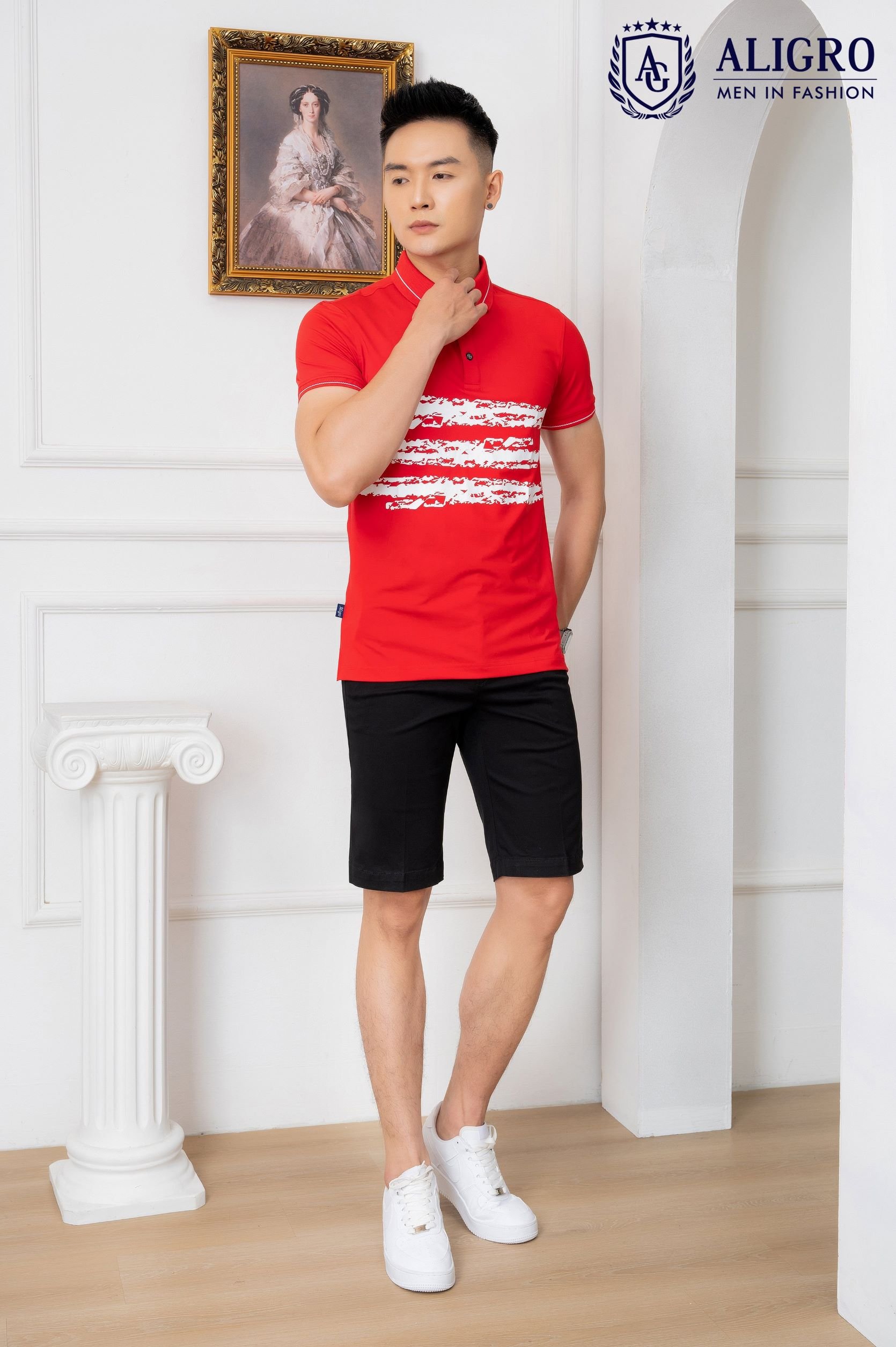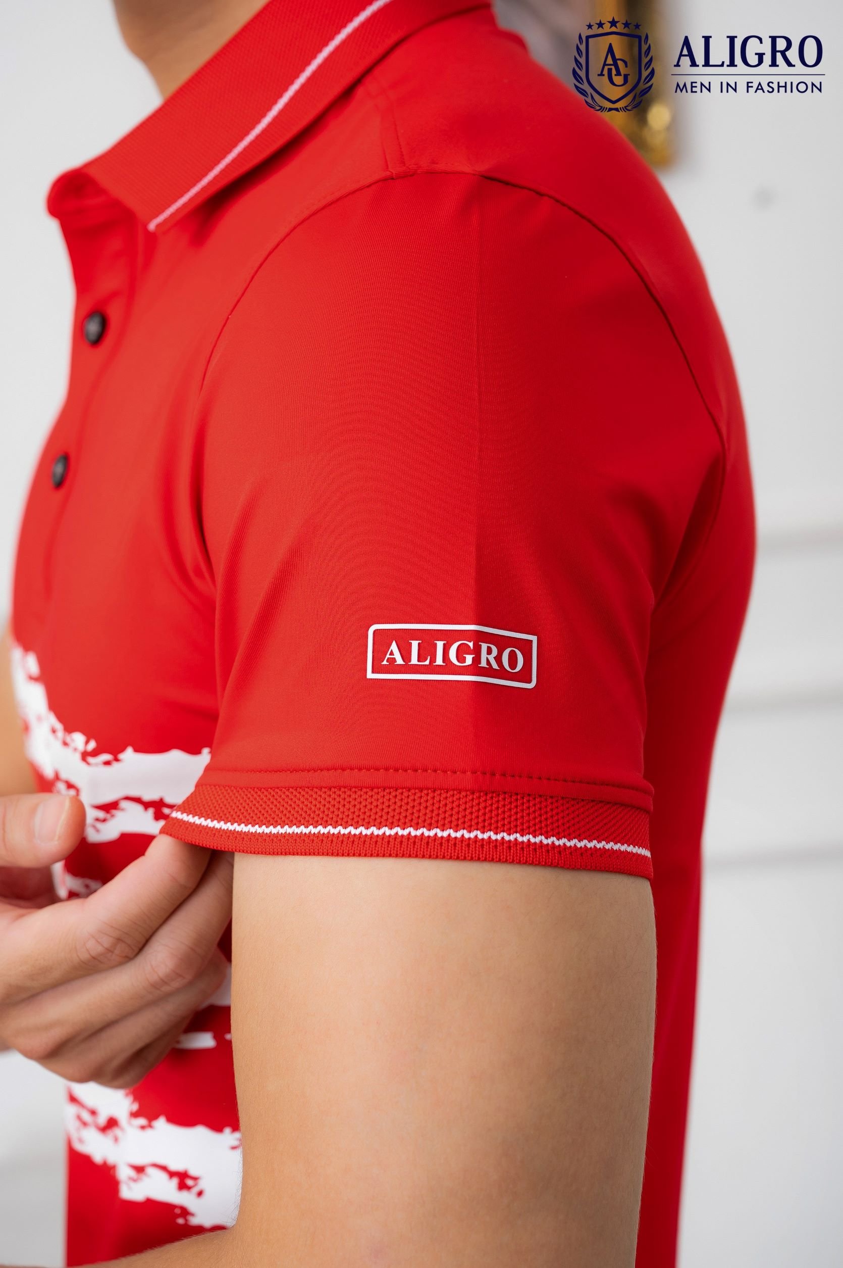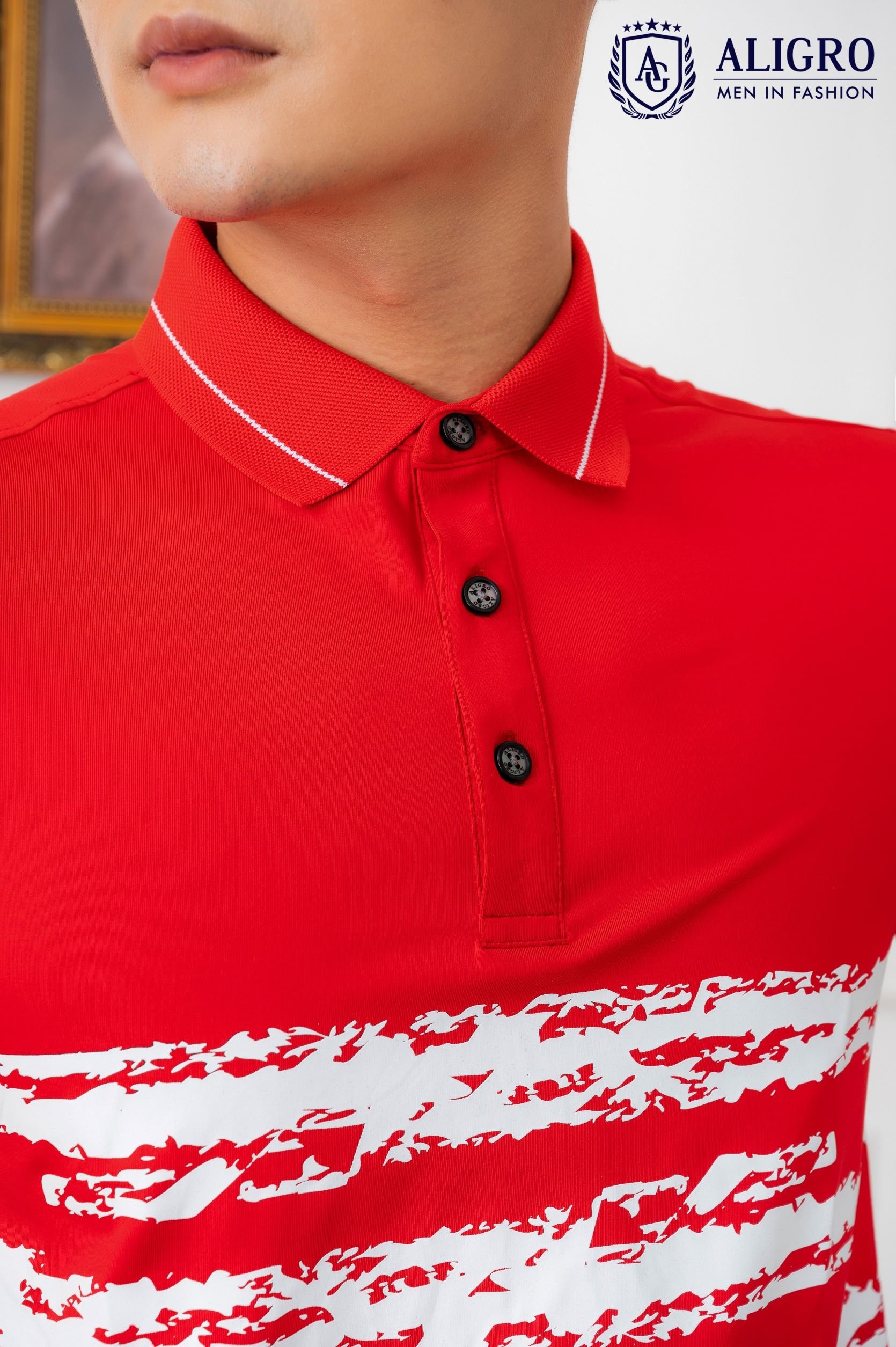 Áo polo Golf ngắn tay cao cấp Aligro ALGPLO71 vải thun lạnh COOLMAX dáng slimfit màu đỏ kẻ ngang