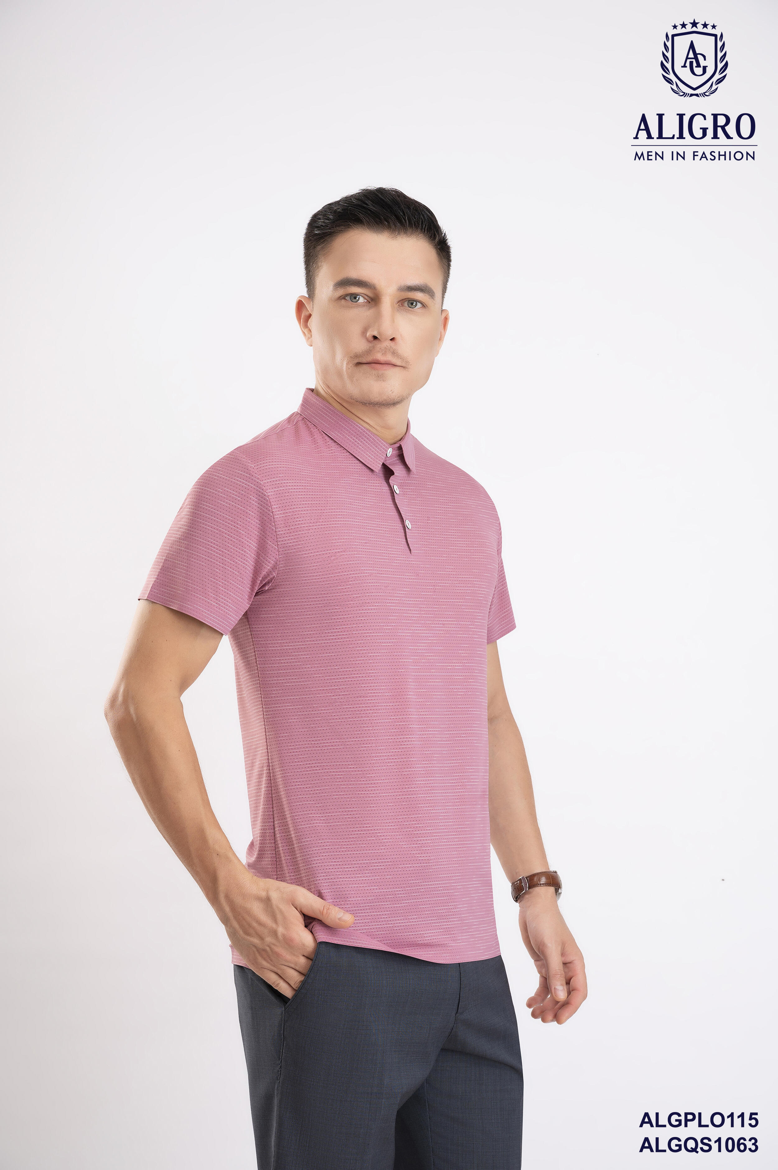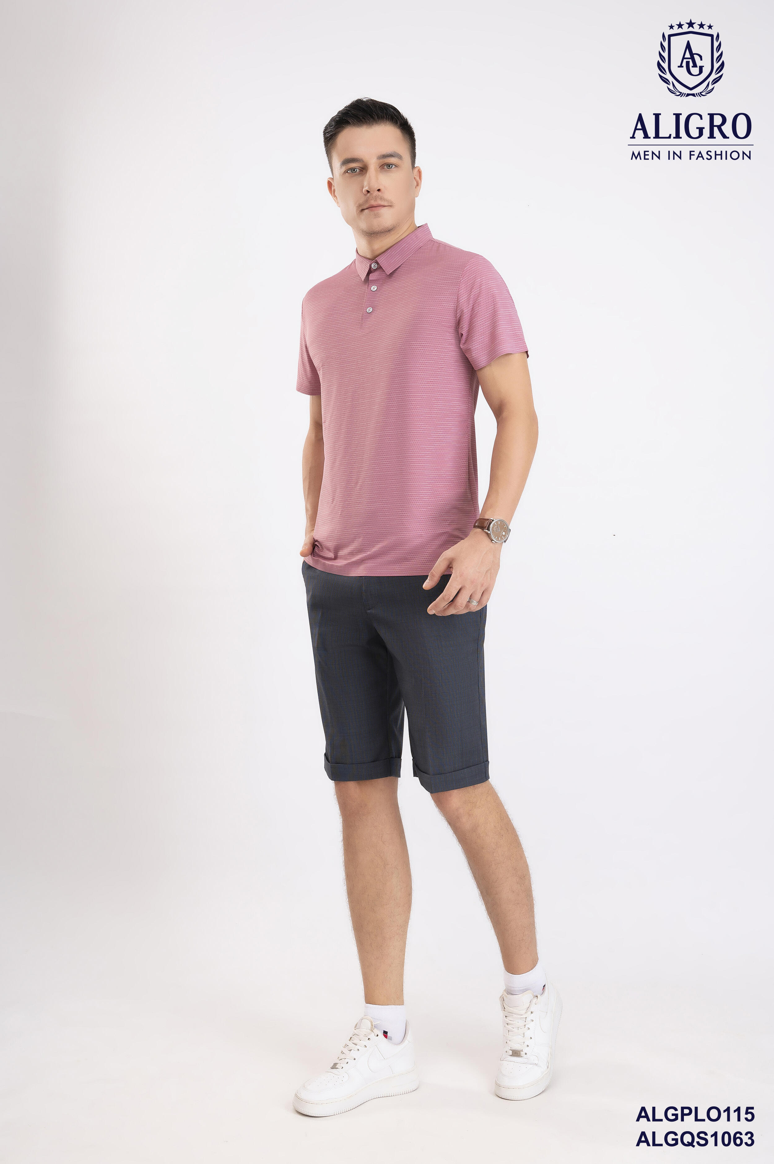 Áo Polo golf cao cấp Aligro ALGPLO115 công nghệ Seamless - không đường may form SLIMFIT kẻ ngang màu vỏ đỗ