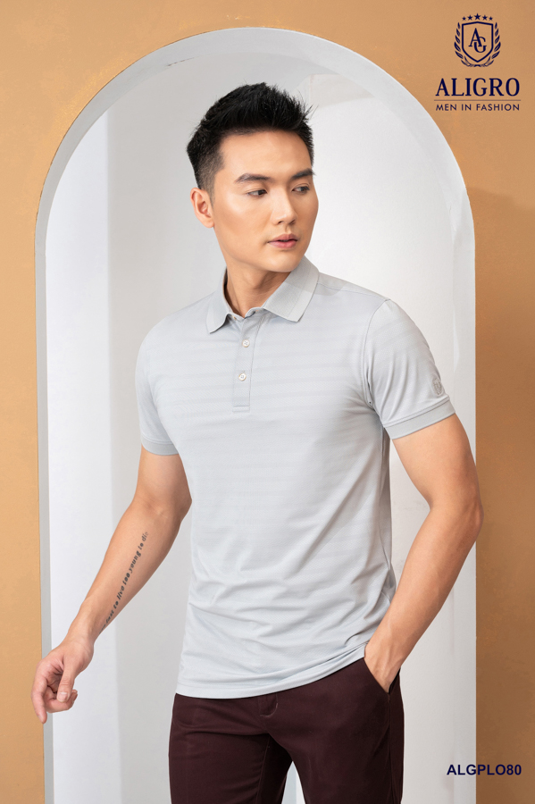 Áo polo Golf ngắn tay cao cấp Aligro ALGPLO80 vải thun lạnh COOLMAX dáng slimfit màu ghi sáng