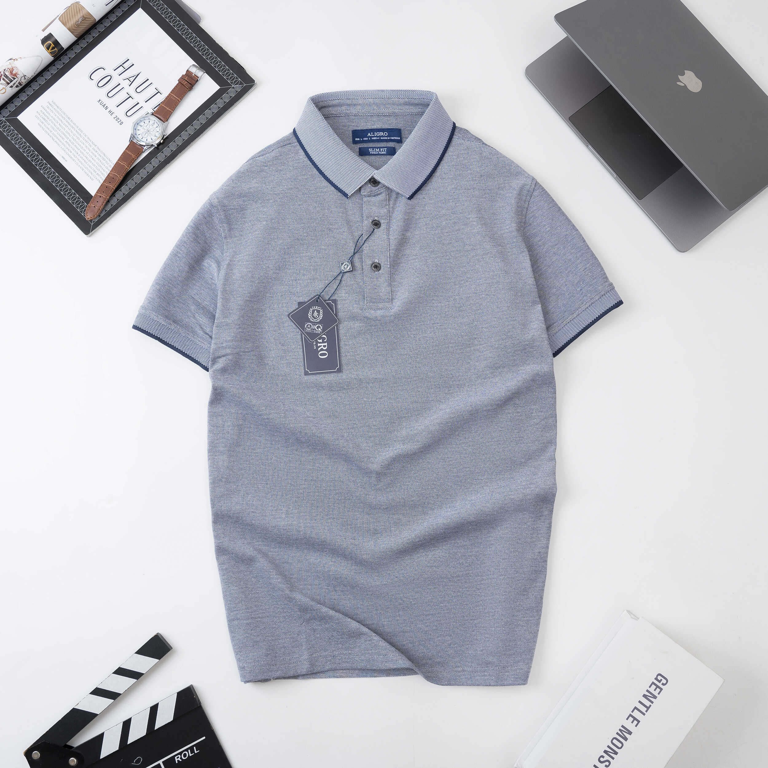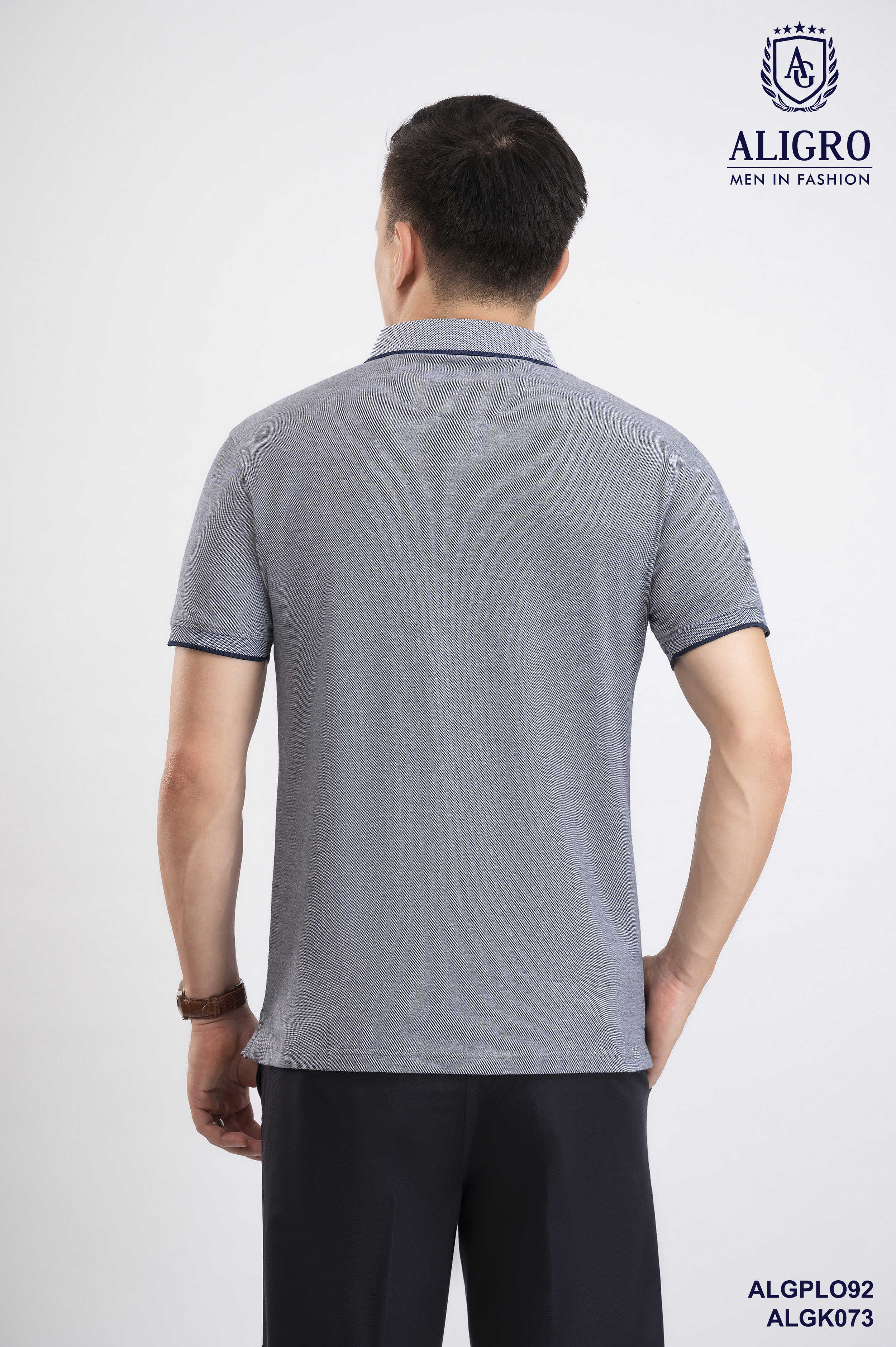 Áo polo nam ngắn tay cao cấp Aligro ALGPLO92 chất liệu 100% cotton form SLIMFIT phối 2 màu sợi ghi-navy